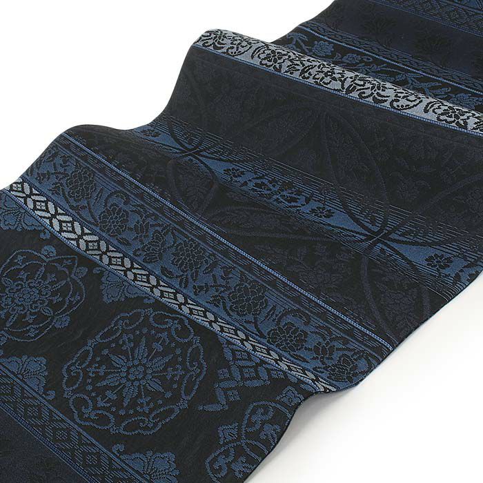 他の画像を見る 《お仕立て上り》【最短日お届け】小紋 紬 色無地 御召 などのお着物に 名古屋帯 博多帯 博多織 帯 八寸 黒 宝相華文 縞 協和織工場 正絹 仕立て上がり 当店特別価格 ¥ 49,500 税込 在庫切れ 再入荷お知らせ お気に入りに登録する