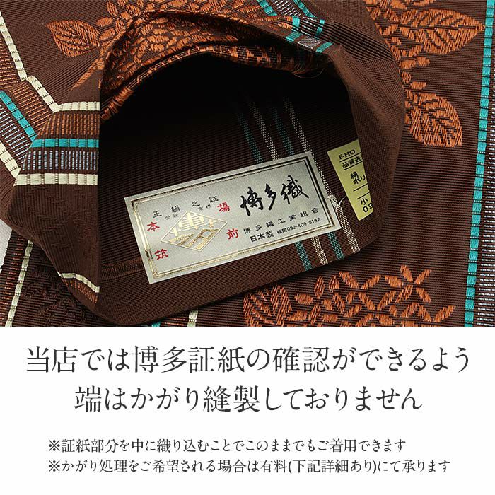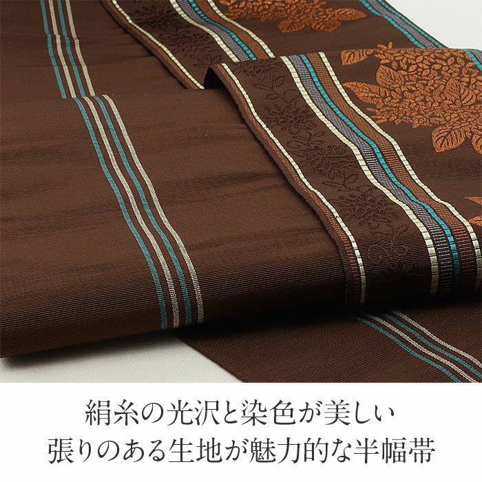 他の画像を見る 【最短日お届け】《博多帯》締めやすく帯崩れしにくい カジュアルなお着物に 半幅帯 帯 本場筑前博多織 小袋帯 こげ茶 華紋 桔梗 日本製 絹 協和織物 長尺 当店特別価格 ¥ 52,800 税込 在庫切れ 再入荷お知らせ お気に入りに登録する