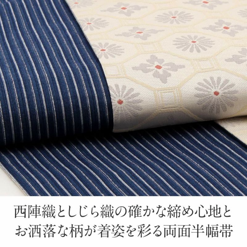 他の画像を見る 【最短日お届け】≪キステオリジナル≫小紋・紬・街着などのカジュアルなお着物に 半幅帯 綿 帯 リバーシブル 長尺 白 青 南の風 日本製 当店特別価格 ¥ 33,000 税込 在庫切れ 詳細を見る お気に入りに登録する