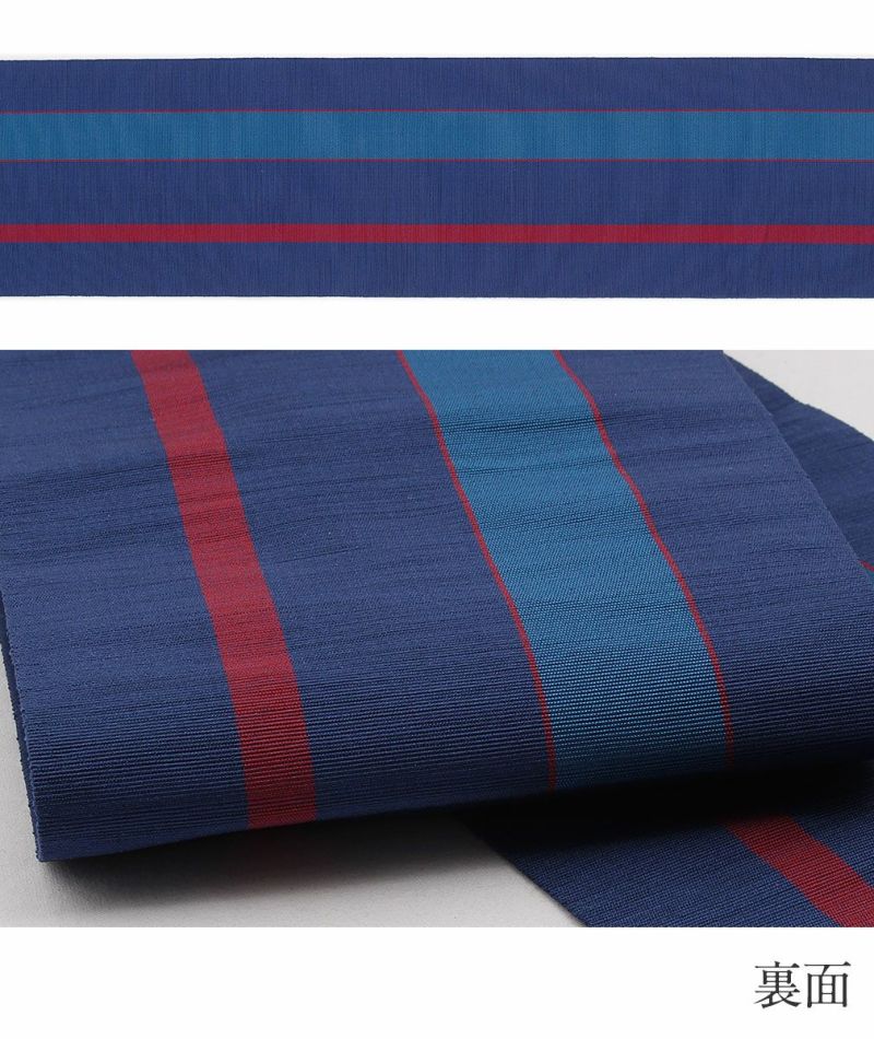 他の画像を見る 年中通して普段着や茶道 華道などのお稽古のお着物に 名古屋帯 博多帯 博多織 帯 八寸 オフホワイト 青 縞 菱 アラベスク菱 協和織工場 正絹 仕立て上がり 当店特別価格 ¥ 44,000 税込 在庫切れ 再入荷お知らせ お気に入りに登録する