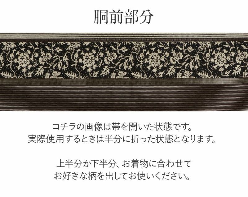 他の画像を見る 【最短日お届け】《博多帯》締めやすく帯崩れしにくい カジュアルなお着物に 博多織 半幅帯 絹 帯 黒 縞 唐花 小野織物 日本製 本場筑前 半巾帯 小袋帯 当店特別価格 ¥ 11,000 税込 在庫切れ 詳細を見る お気に入りに登録する