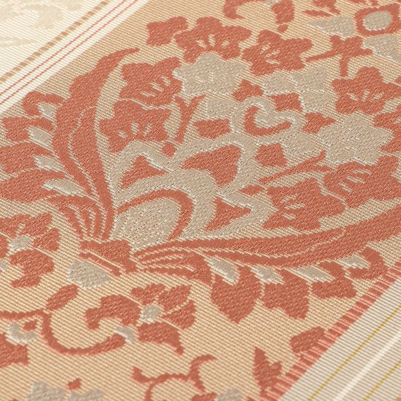 他の画像を見る 年中通して普段着や茶道 華道などのお稽古のお着物に 名古屋帯 博多帯 博多織 帯 八寸 ベージュ 縞 唐花 間道 協和織工場 正絹 仕立て上がり 当店特別価格 ¥ 44,000 税込 在庫切れ 再入荷お知らせ お気に入りに登録する