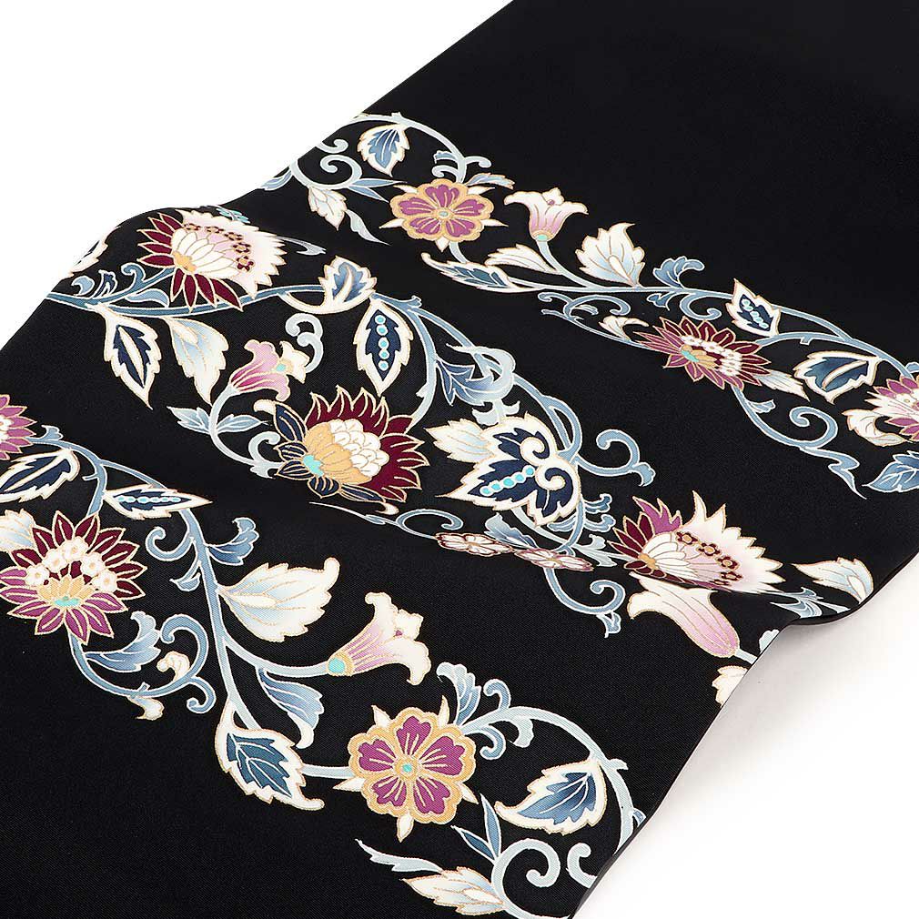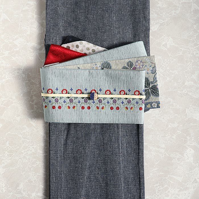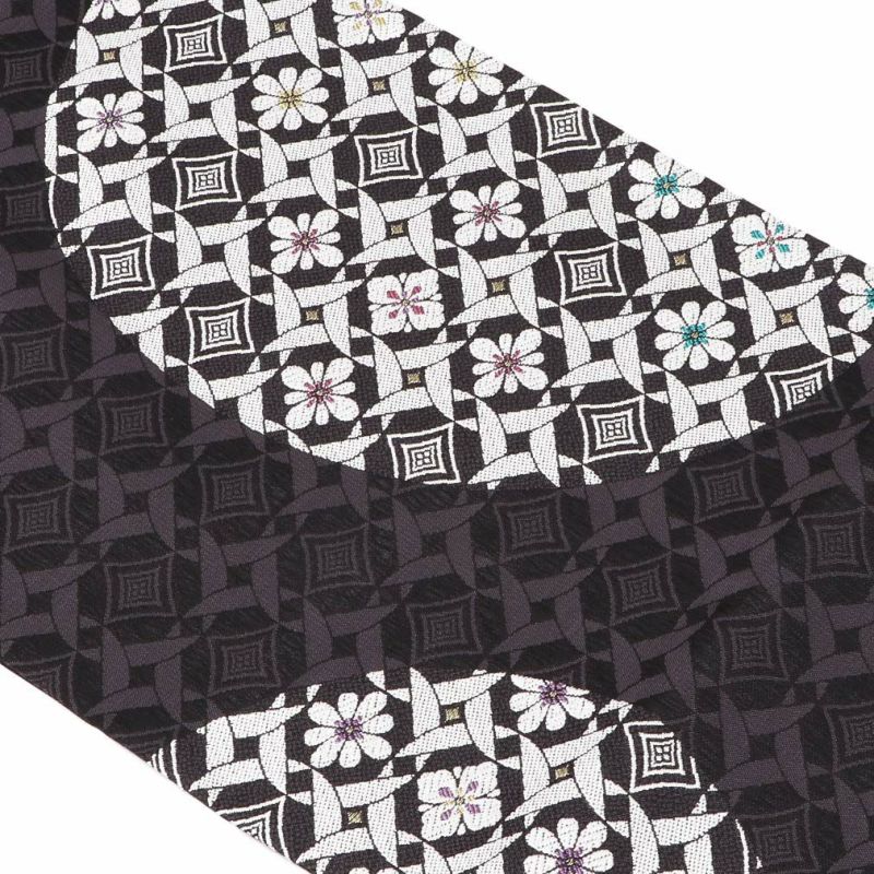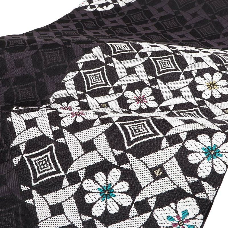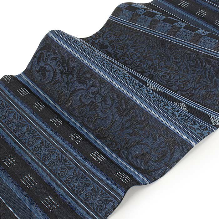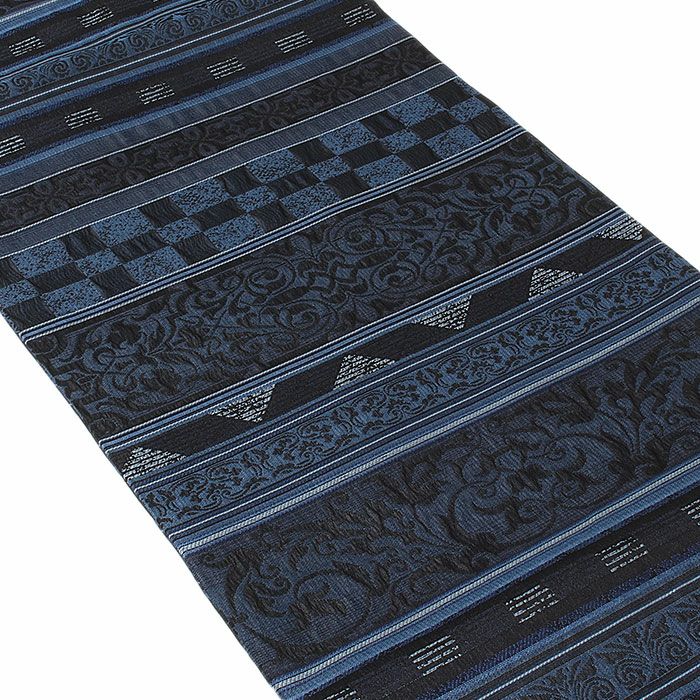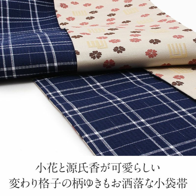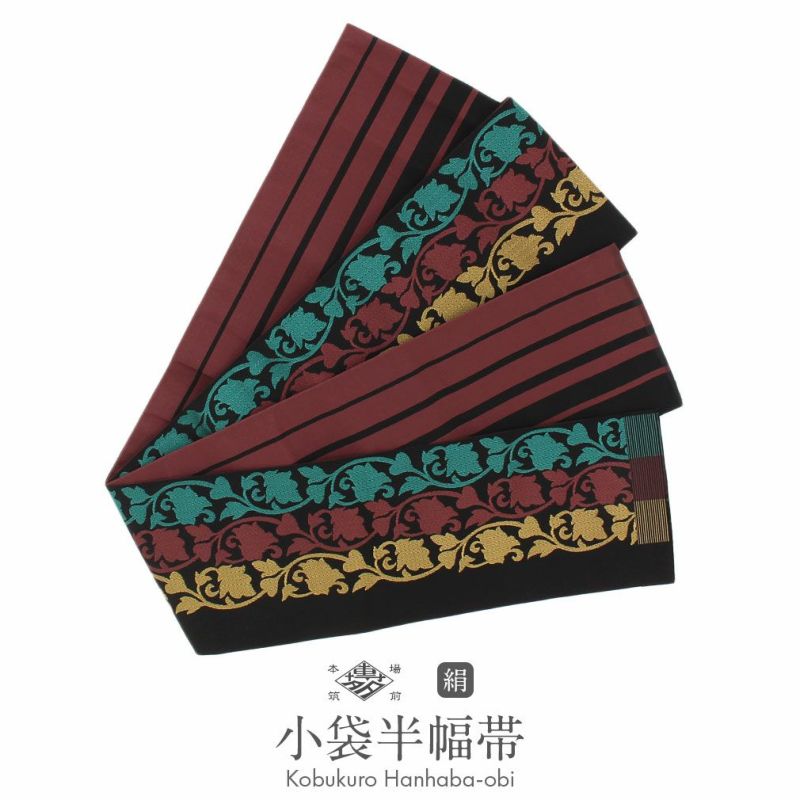 小紋 紬 街着 などのカジュアルなお着物に 博多織 半幅帯 普段用 博多帯 小袋帯 正絹 ブラック ブルー グレー イエロー ブラウン 縞 更紗市松 花 日本製