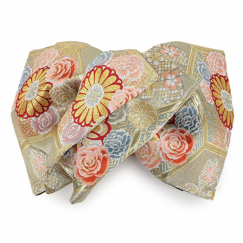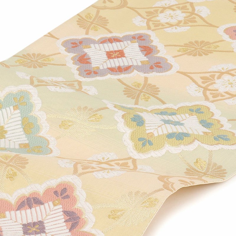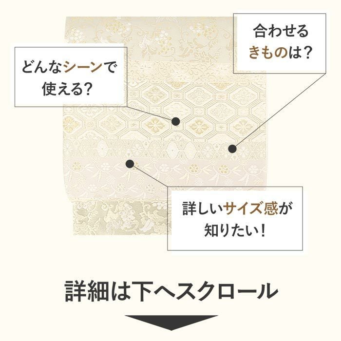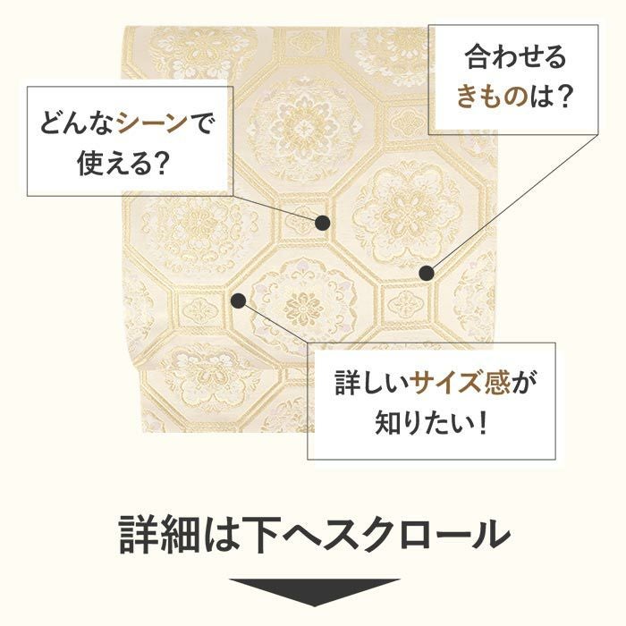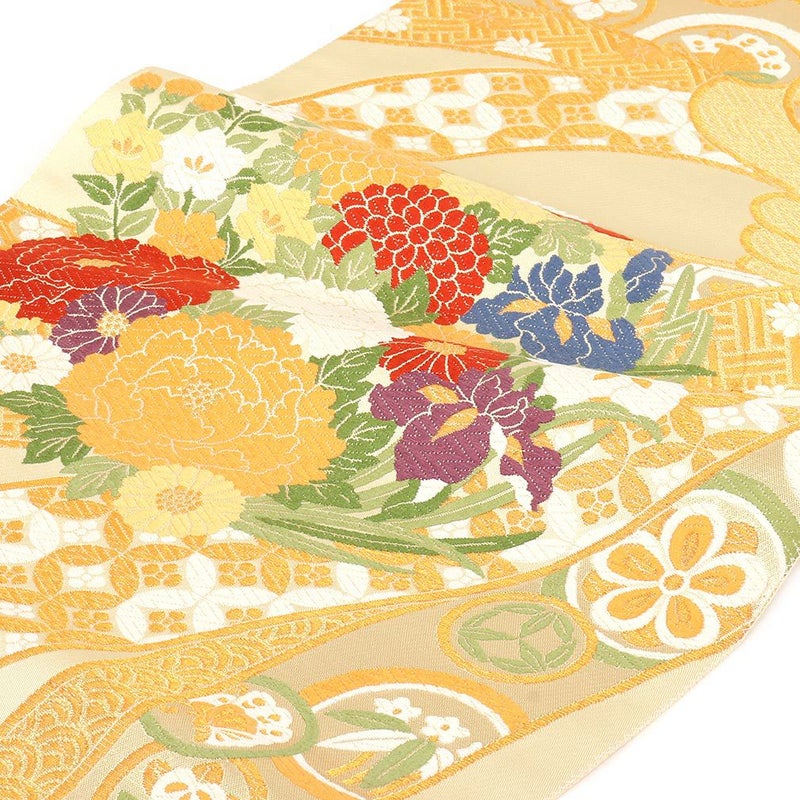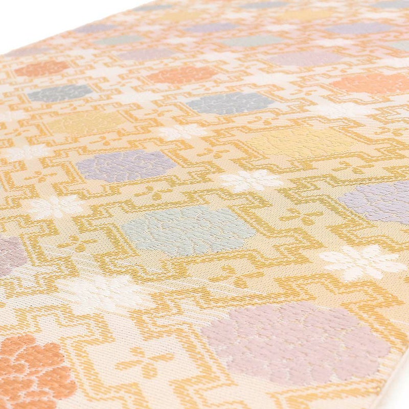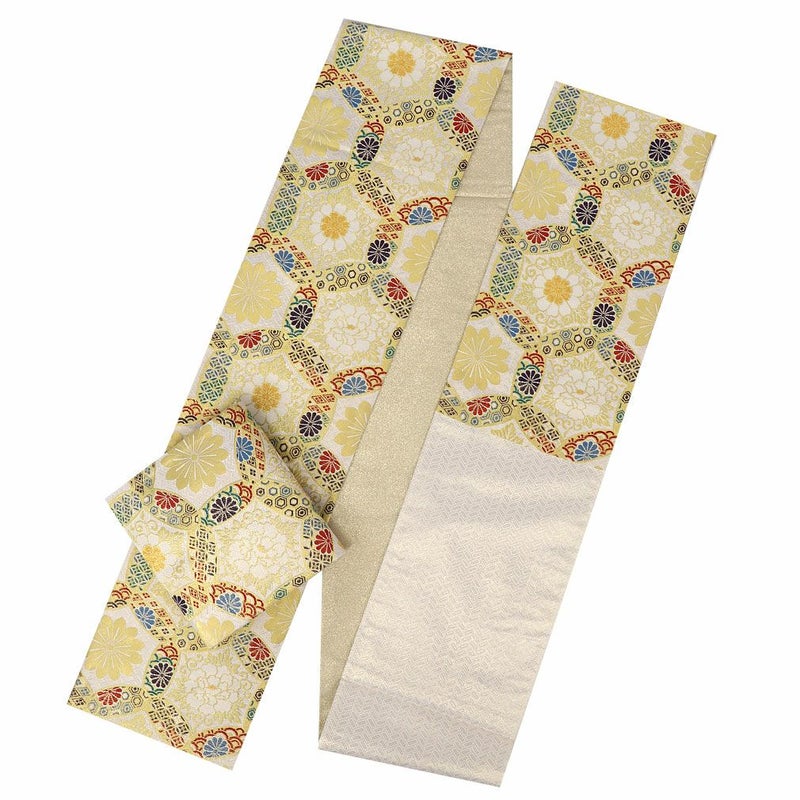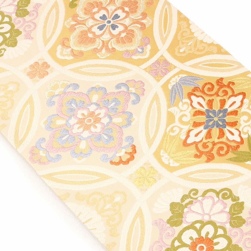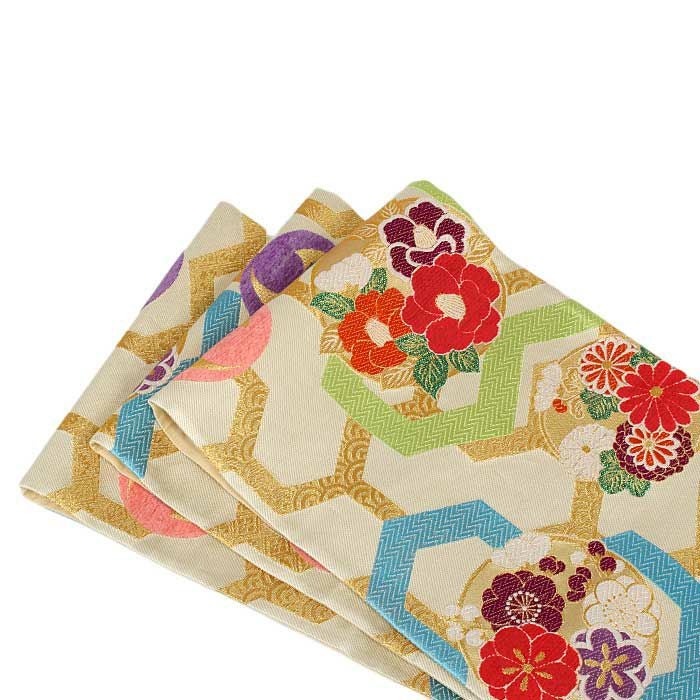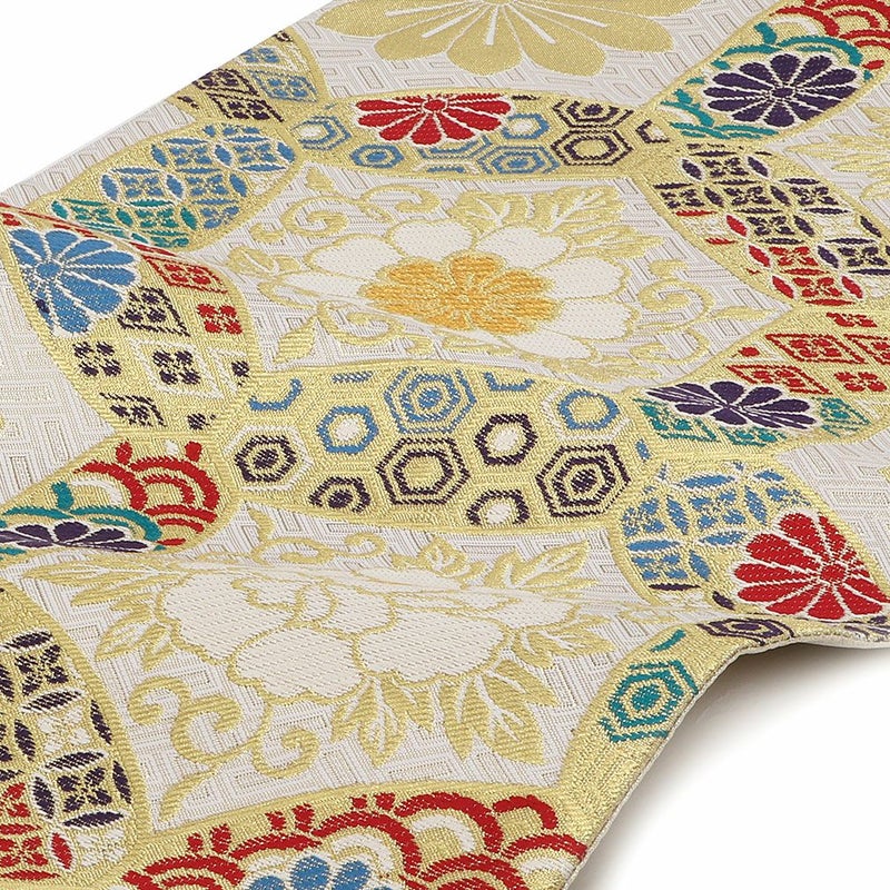 他の画像を見る 《お仕立て上り》【最短日お届け】振袖などのフォーマルなお着物に 振袖 帯 袋帯 成人式 クリーム 毘沙門亀甲 花丸紋 西陣織 大光織物 仕立て上がり 新品 帯単品 当店特別価格 ¥ 27,500 税込 カートに入れる お気に入りに登録する