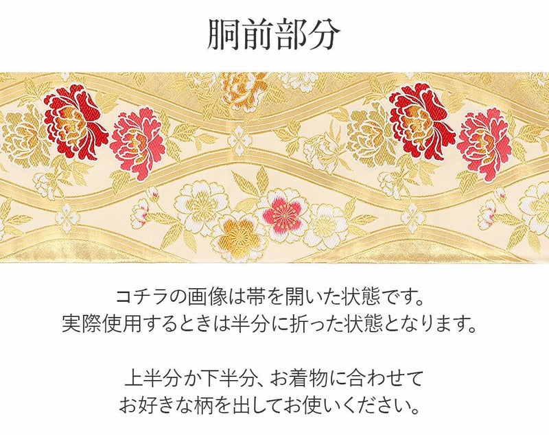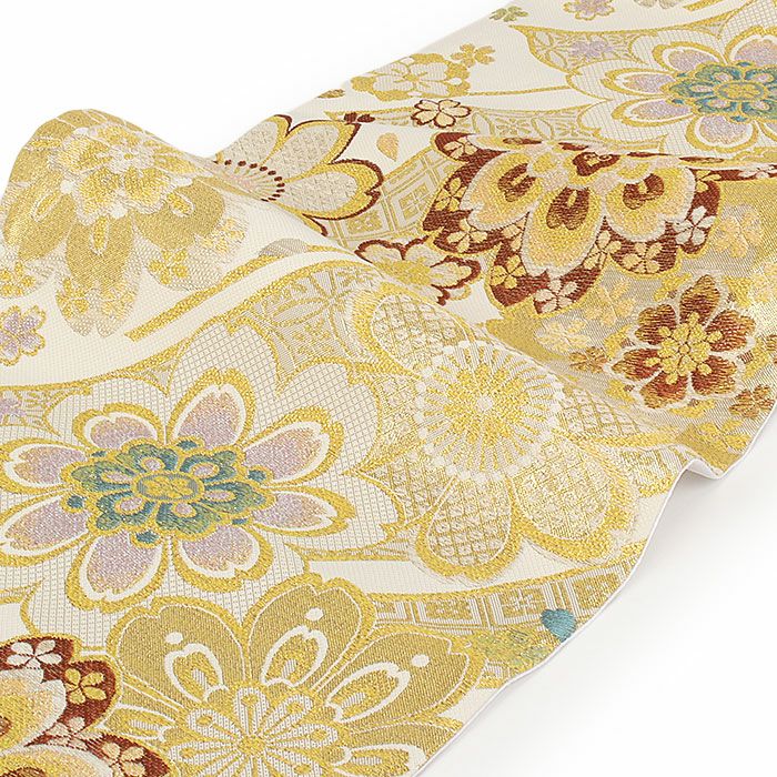 他の画像を見る 《お仕立て上り》【最短日お届け】振袖などのフォーマルなお着物に 振袖 帯 袋帯 成人式 ゴールド アイボリー 八重桜 熨斗 西陣織 酒井守織物 仕立て上がり 新品 金 白 帯単品 当店特別価格 ¥ 22,000 税込 カートに入れる お気に入りに登録する