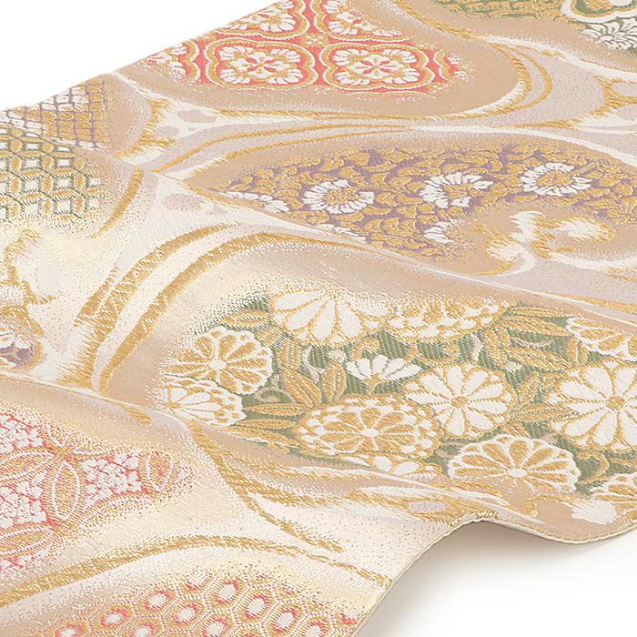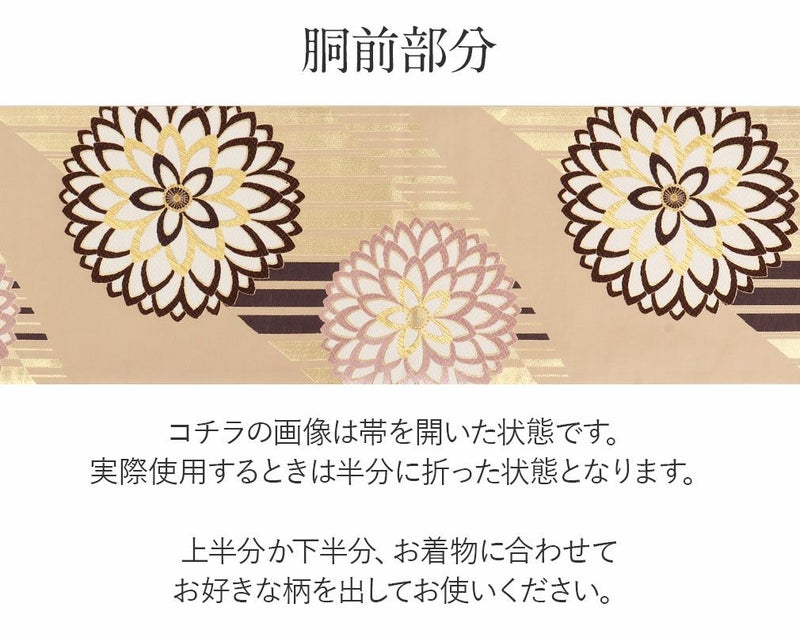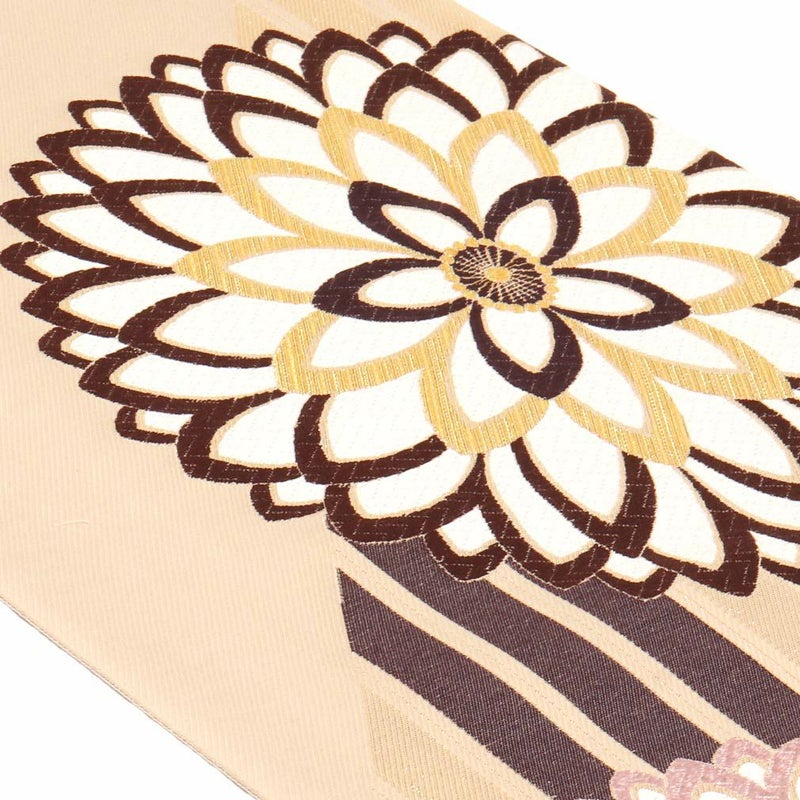 他の画像を見る 《お仕立て上り》【最短日お届け】振袖などのフォーマルなお着物に 袋帯 振袖用 帯 成人式 < ベージュ /縞に大菊 > 樹織物 仕立て上がり 当店特別価格 ¥ 38,500 税込 カートに入れる お気に入りに登録する