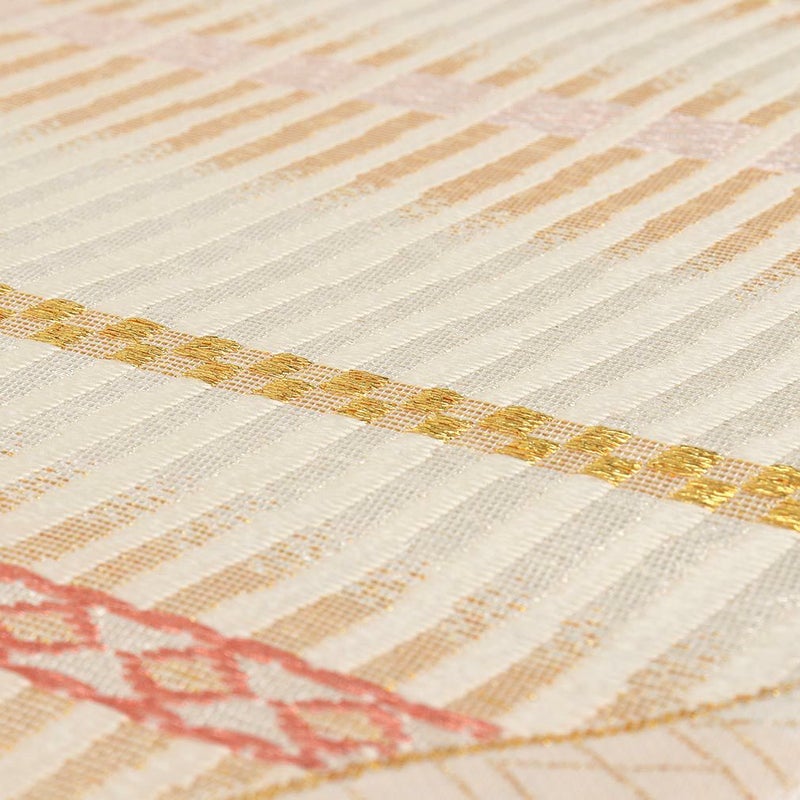 他の画像を見る 《お仕立て上り》【最短日お届け】小紋 紬 色無地 御召 などのお着物に 名古屋帯 ベージュ 変わり格子 唐花 西陣織 加島 普段用 九寸 仕立て上がり 絹 未使用 新品 春 秋 冬 当店特別価格 ¥ 38,500 税込 カートに入れる お気に入りに登録する