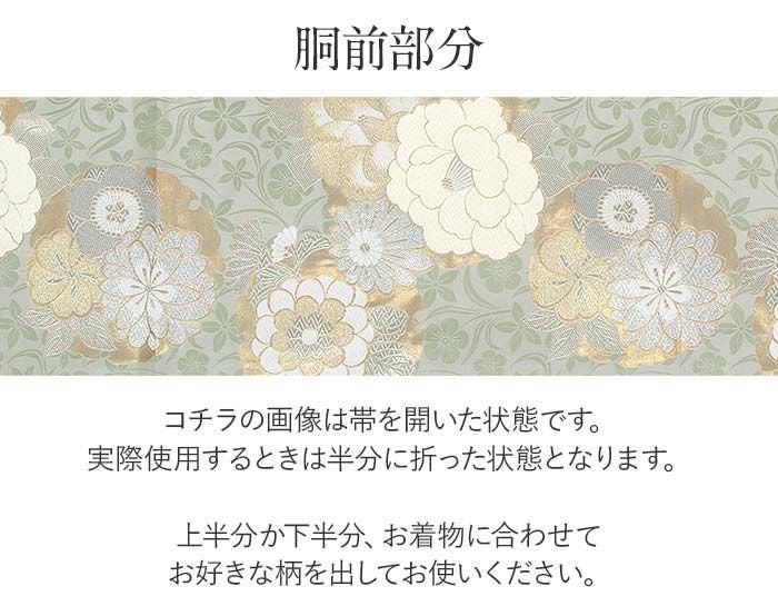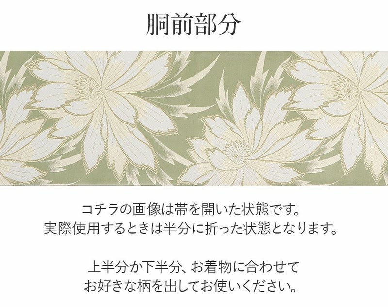 他の画像を見る 《お仕立て上り》【最短日お届け】振袖などのフォーマルなお着物に 振袖 帯 袋帯 成人式 モスグリーン 牡丹 雪輪 華紋 西陣織 京都イシハラ 仕立て上がり 新品 当店特別価格 ¥ 47,300 税込 カートに入れる お気に入りに登録する