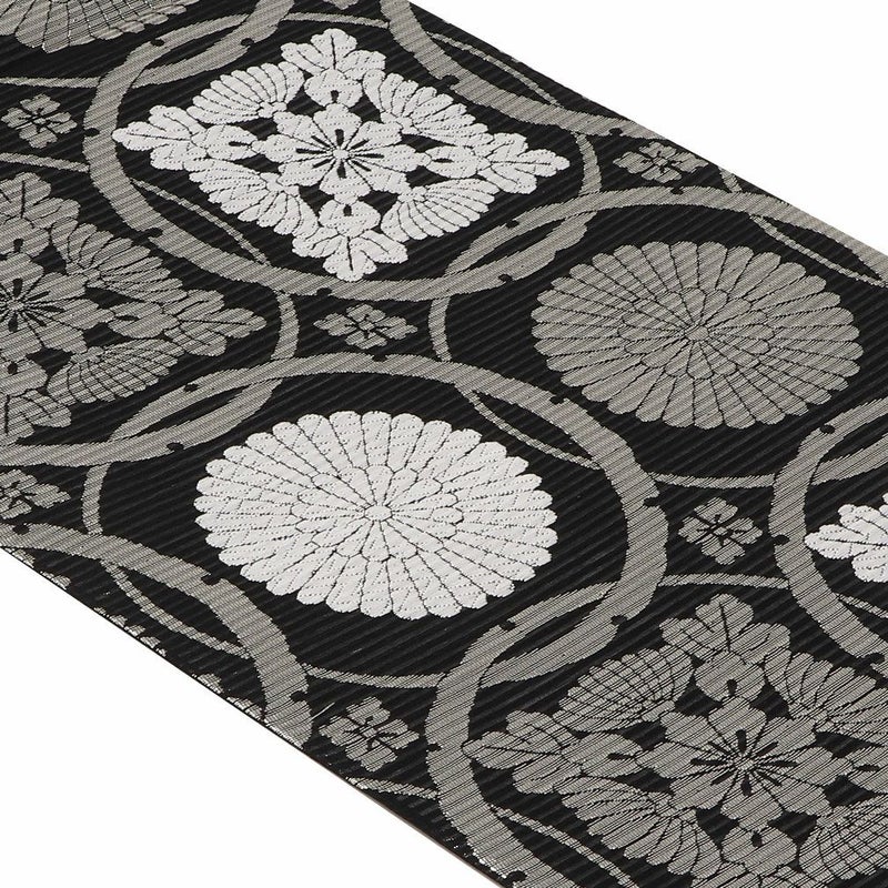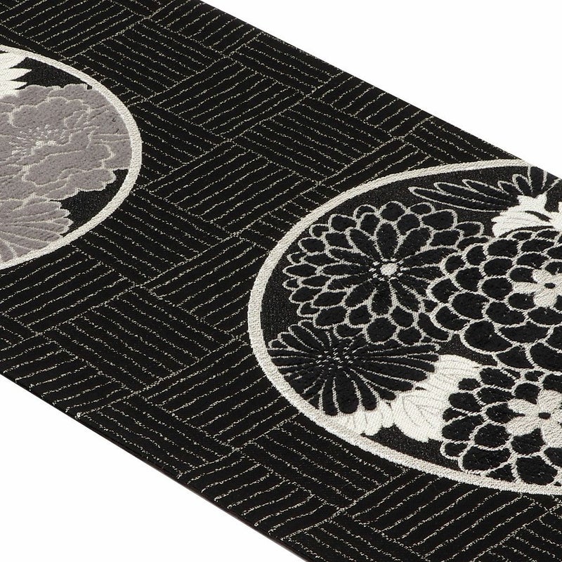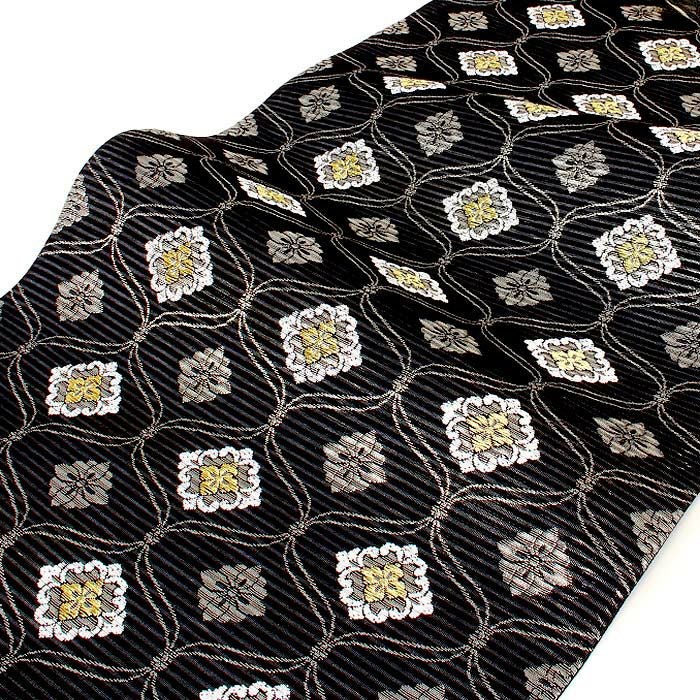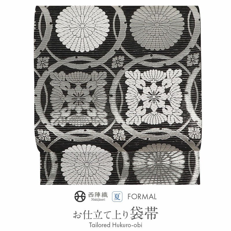 他の画像を見る 《お仕立て上り》【最短日お届け】夏のお着物に相応しい西陣織 袋帯 夏帯 袋帯 黒 輪繋ぎ華紋 西陣織 佐々木染織物 仕立て上がり 正絹 日本製 当店特別価格 ¥ 33,000 税込 カートに入れる お気に入りに登録する