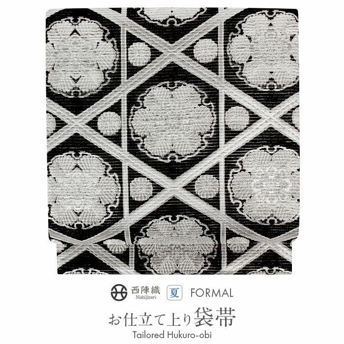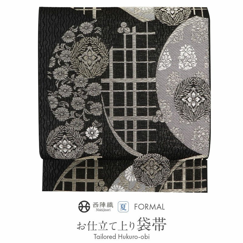 他の画像を見る 《お仕立て上り》【最短日お届け】夏 結婚式の黒留袖 色留袖や訪問着に 夏袋帯 袋帯 夏帯 フォーマル 夏留袖 夏訪問着 黒 銀 雪輪 華紋 格子 絽 佐々木織物 西陣織 仕立て上がり 新品 未使用 正絹 当店特別価格 ¥ 38,500 税込 カートに入れる お気に入りに登録する