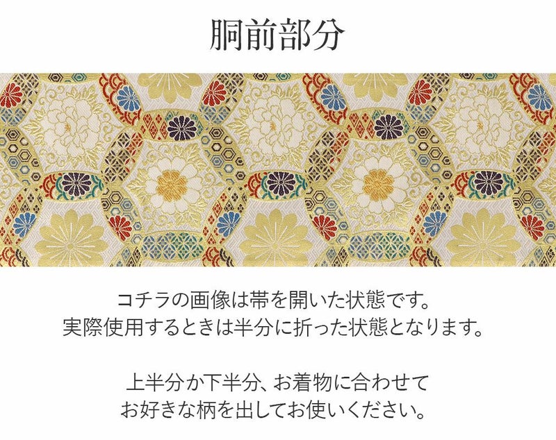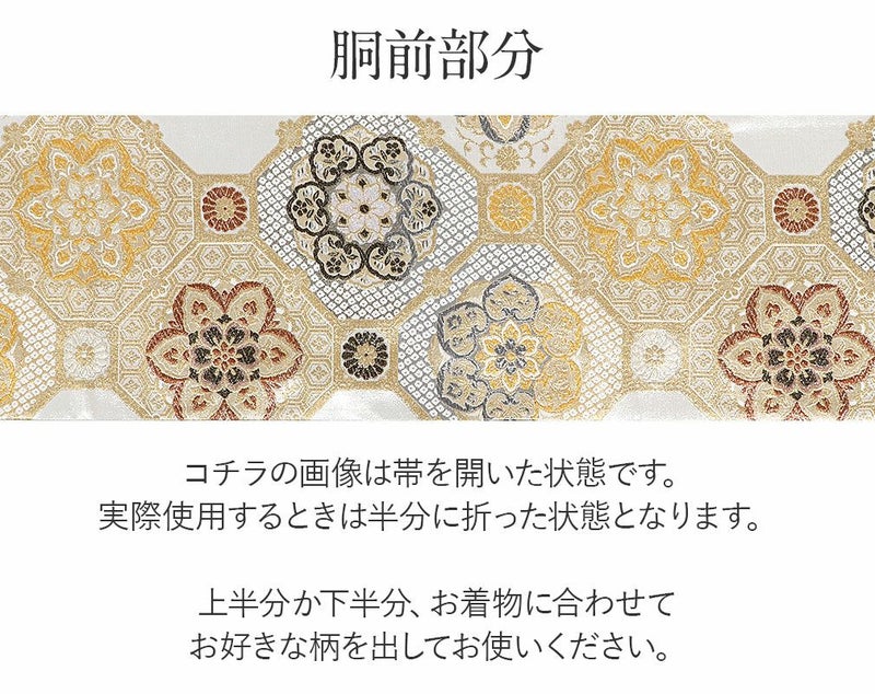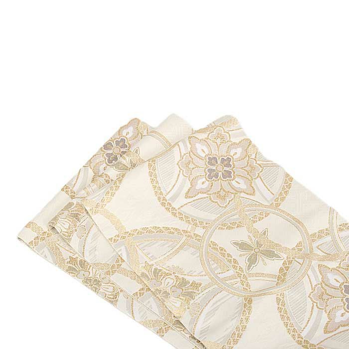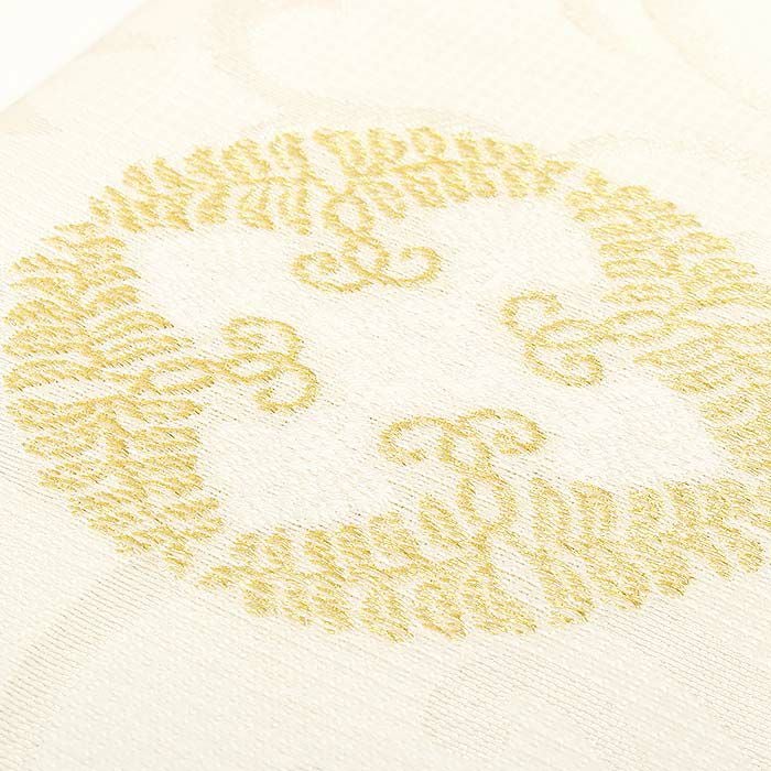他の画像を見る 《お仕立て上り》【最短日お届け】振袖などのフォーマルなお着物に 振袖 帯 袋帯 成人式 ゴールド アイボリー 雪輪 華紋 西陣織 酒井守織物 仕立て上がり 新品 金 白 帯単品 当店特別価格 ¥ 22,000 税込 カートに入れる お気に入りに登録する