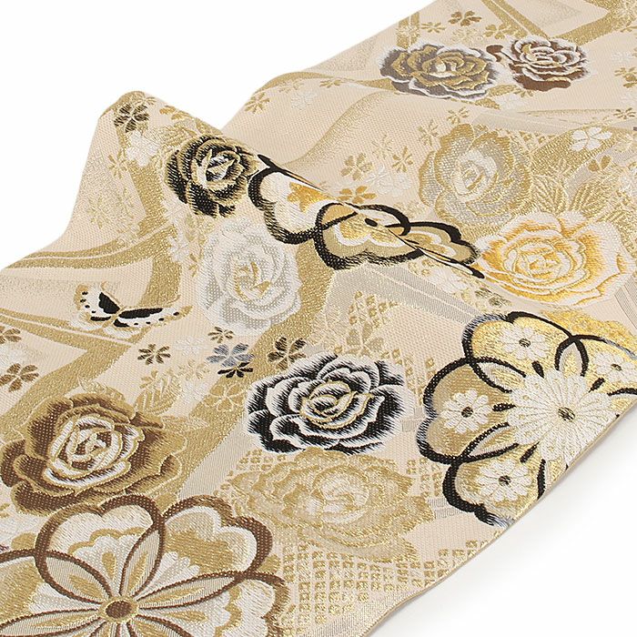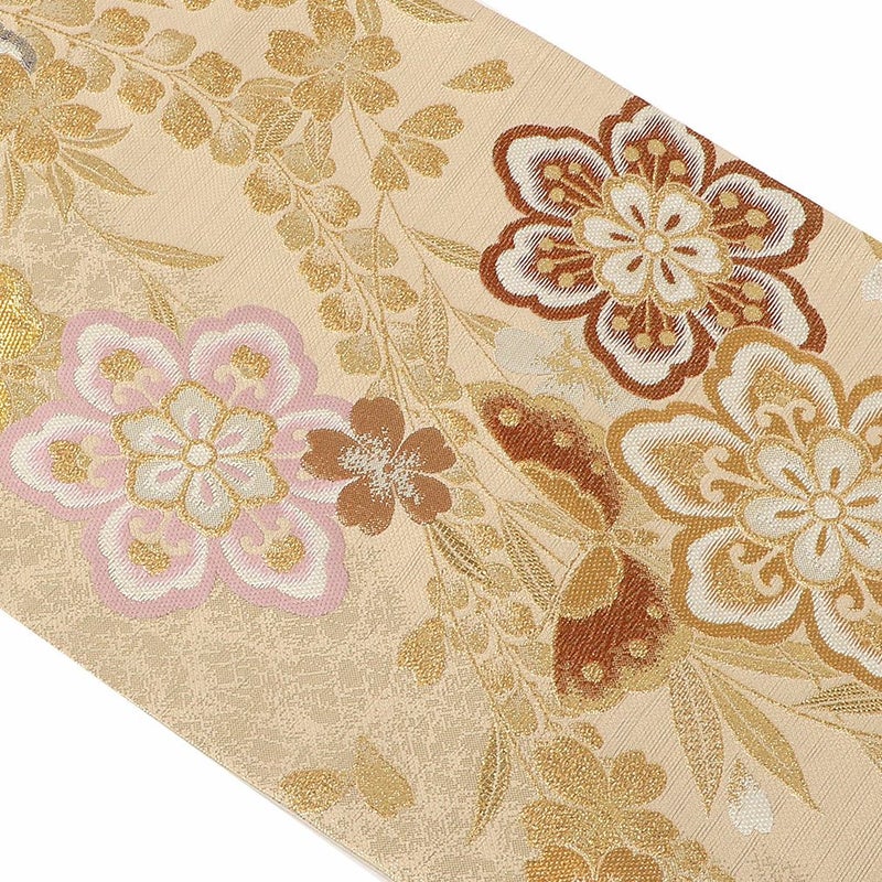 他の画像を見る 《お仕立て上り》【最短日お届け】振袖などのフォーマルなお着物に 振袖 帯 袋帯 成人式 ベージュ ゴールド 華紋 薔薇 蝶 西陣織 酒井守織物 仕立て上がり 新品 金 帯単品 当店特別価格 ¥ 22,000 税込 カートに入れる お気に入りに登録する