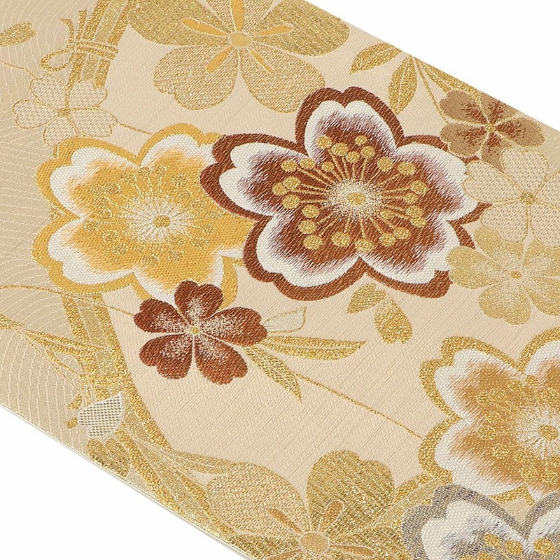 他の画像を見る 《お仕立て上り》【最短日お届け】振袖などのフォーマルなお着物に 振袖 帯 袋帯 成人式 ゴールド アイボリー 華紋 桜 梅 西陣織 酒井守織物 仕立て上がり 新品 金 白 帯単品 当店特別価格 ¥ 22,000 税込 カートに入れる お気に入りに登録する