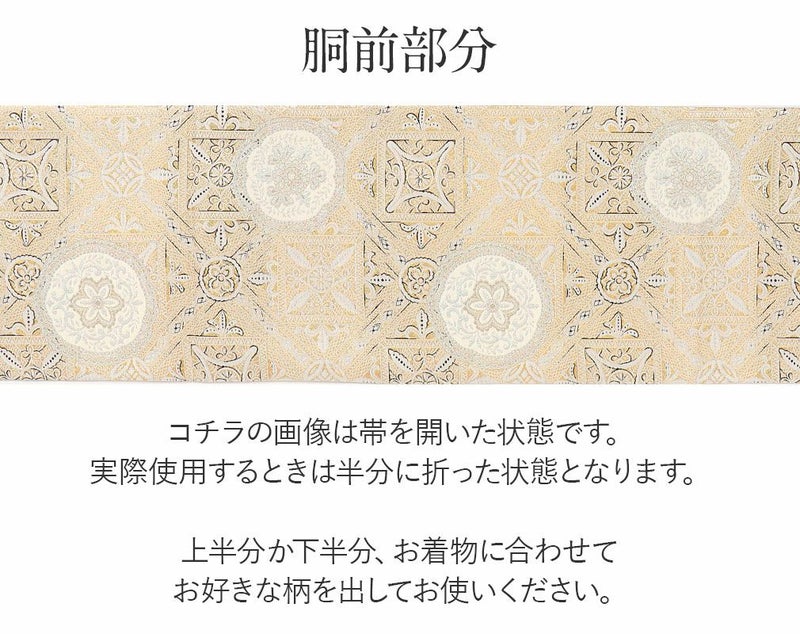 他の画像を見る 《お仕立て上り》【最短日お届け】春 秋 冬 袷 単衣の時期のお着物に 名古屋帯 クリーム 薄茶 花丸紋 花唐草 西陣織 弥栄織物 普段用 九寸 仕立て上がり 絹 未使用 新品 春 秋 冬 当店特別価格 ¥ 29,700 税込 カートに入れる お気に入りに登録する