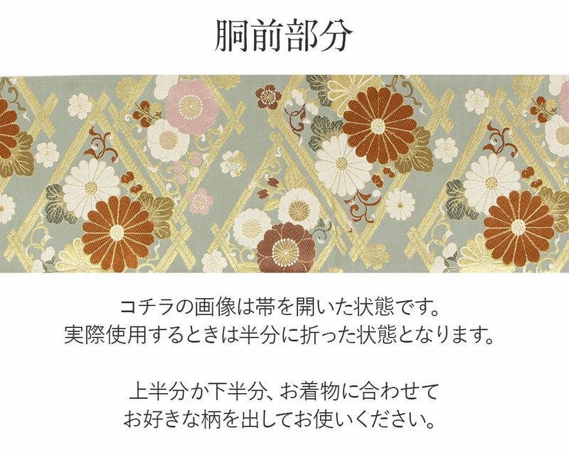 他の画像を見る 《お仕立て上り》【最短日お届け】振袖などのフォーマルなお着物に 袋帯 振袖用 帯 成人式 グリーン 菊 梅 桜 西陣織 大光織物 仕立て上がり 当店特別価格 ¥ 39,600 税込 カートに入れる お気に入りに登録する