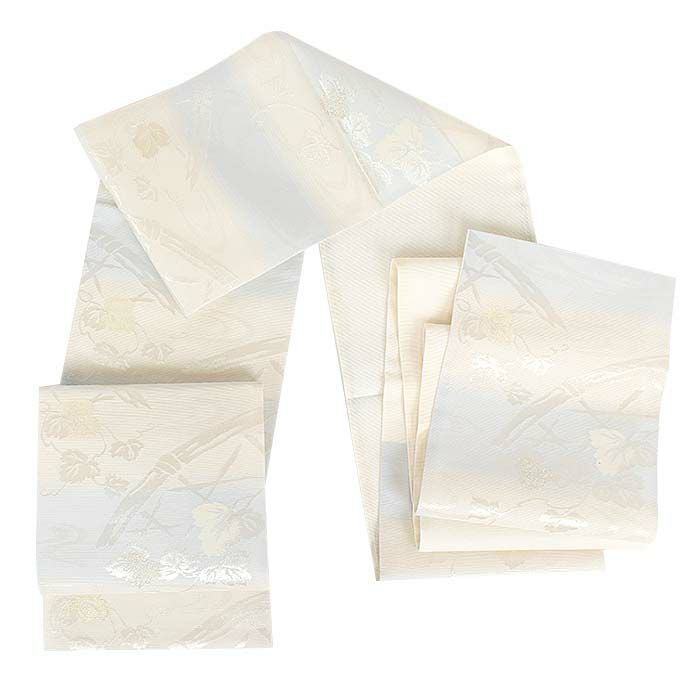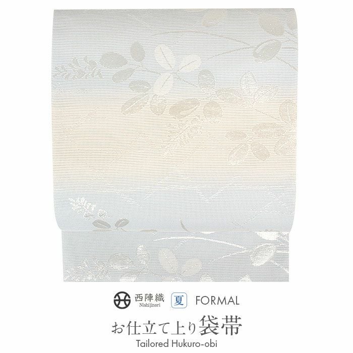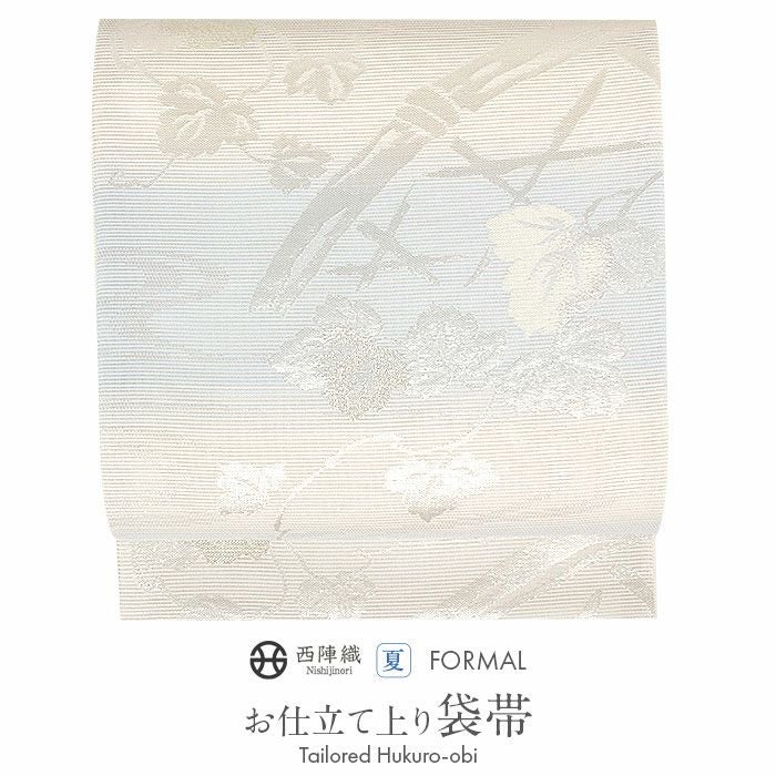 他の画像を見る 《お仕立て上り》【最短日お届け】夏 結婚式の黒留袖 色留袖や訪問着に 夏袋帯 袋帯 夏帯 フォーマル 夏留袖 夏訪問着 アイボリー 水色 リーフ 絽 京都イシハラ織物 西陣織 仕立て上がり 新品 未使用 正絹 当店特別価格 ¥ 33,000 税込 カートに入れる お気に入りに登録する
