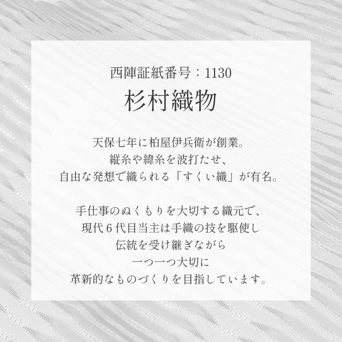 他の画像を見る 《お仕立て上り》【最短日お届け】春 秋 冬 袷 単衣の時期のお着物に 名古屋帯 白 さざ波 西陣織 杉村織物 普段用 九寸 仕立て上がり 絹 未使用 新品 春 秋 冬 当店特別価格 ¥ 77,000 税込 カートに入れる お気に入りに登録する
