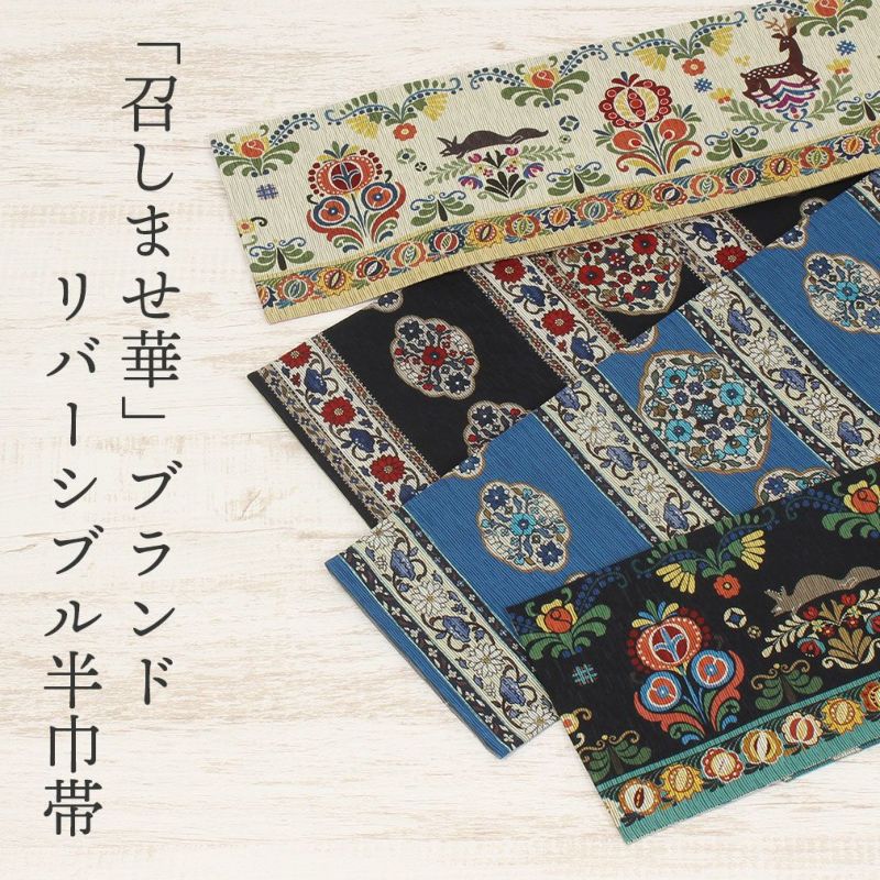 他の画像を見る 【最短日お届け】小紋・紬・街着などのカジュアルなお着物に 半幅帯 帯 リバーシブル ポリエステル100% < 黒 / 更紗 >日本製 当店特別価格 ¥ 9,680 税込 カートに入れる お気に入りに登録する