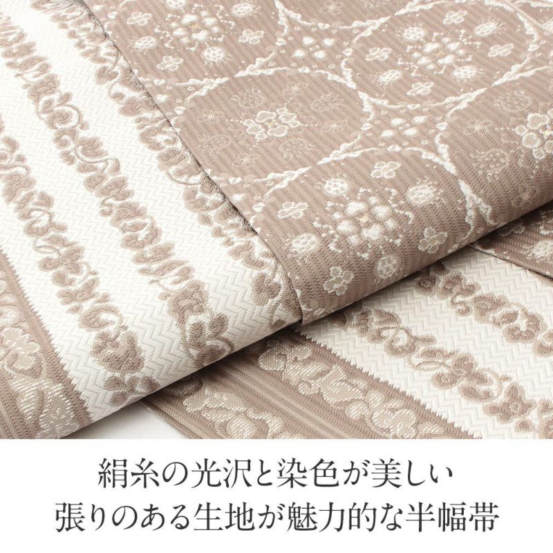 他の画像を見る 【最短日お届け】《博多帯》締めやすく帯崩れしにくい カジュアルなお着物に 博多帯 半幅帯 本場筑前博多織 協和織工場 <白/華紋> 日本製 正絹 当店特別価格 ¥ 52,800 税込 カートに入れる お気に入りに登録する