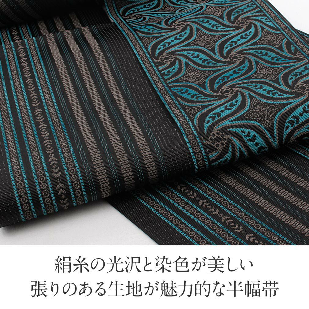 他の画像を見る 【最短日お届け】《博多帯》締めやすく帯崩れしにくい カジュアルなお着物に 博多帯 半幅帯 本場筑前博多織 協和織工場 <黒/華紋> 日本製 正絹 当店特別価格 ¥ 52,800 税込 カートに入れる お気に入りに登録する