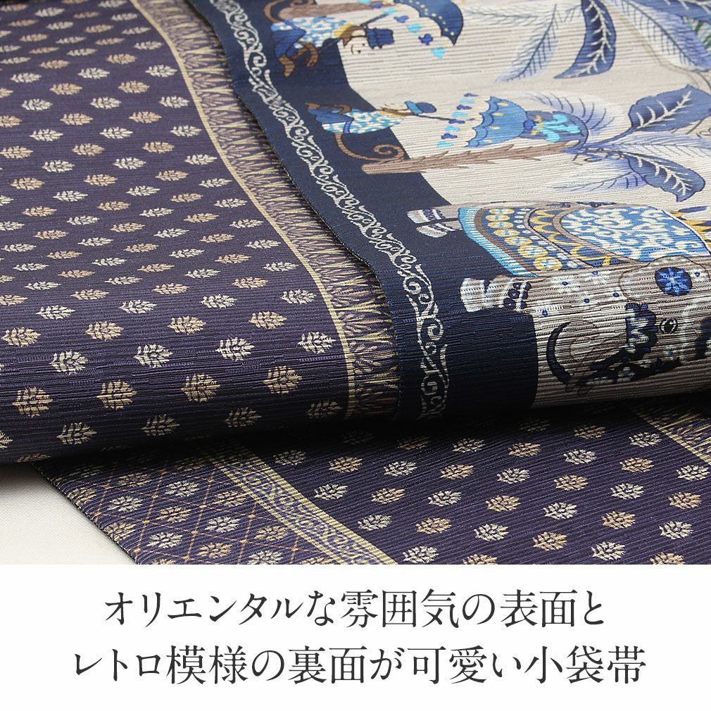 他の画像を見る 【最短日お届け】小紋・紬・色無地などカジュアルな着物に 帯 京袋帯 <ネイビー/アラビアンナイト> 正絹 仕立て上がり 紺 日本製 当店特別価格 ¥ 52,800 税込 カートに入れる お気に入りに登録する