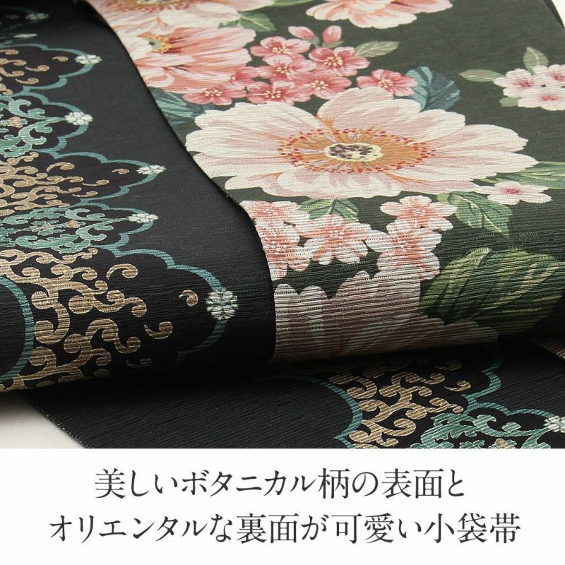 他の画像を見る 【最短日お届け】《召しませ花》小紋などのカジュアルなお着物や夏の着物・単衣に 半幅帯 長尺 帯 リバーシブル 召しませ花 黒 グレー プリムラ 日本製 当店特別価格 ¥ 44,000 税込 カートに入れる お気に入りに登録する