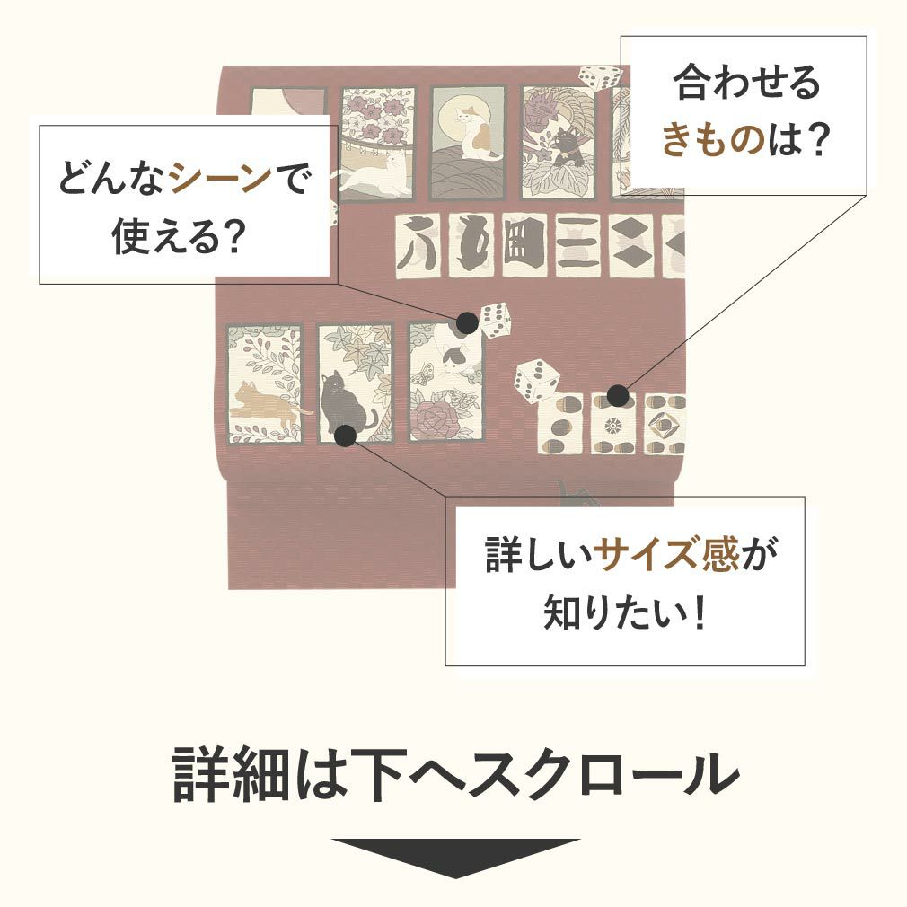 他の画像を見る 【最短日お届け】≪召しませ花≫小紋・紬・色無地などカジュアルな着物に 正絹 京袋帯(仕立上り) <お月見ネコ>ライトグレー「召しませ花」シリーズ 当店特別価格 ¥ 57,200 税込 カートに入れる お気に入りに登録する
