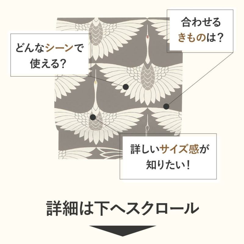 他の画像を見る 【最短日お届け】≪召しませ花≫小紋・紬・色無地などカジュアルな着物に 帯 京袋帯 正絹 お仕立て上がり <青灰 / 鶴 > 日本製 < 召しませ花 > 当店特別価格 ¥ 57,200 税込 カートに入れる お気に入りに登録する