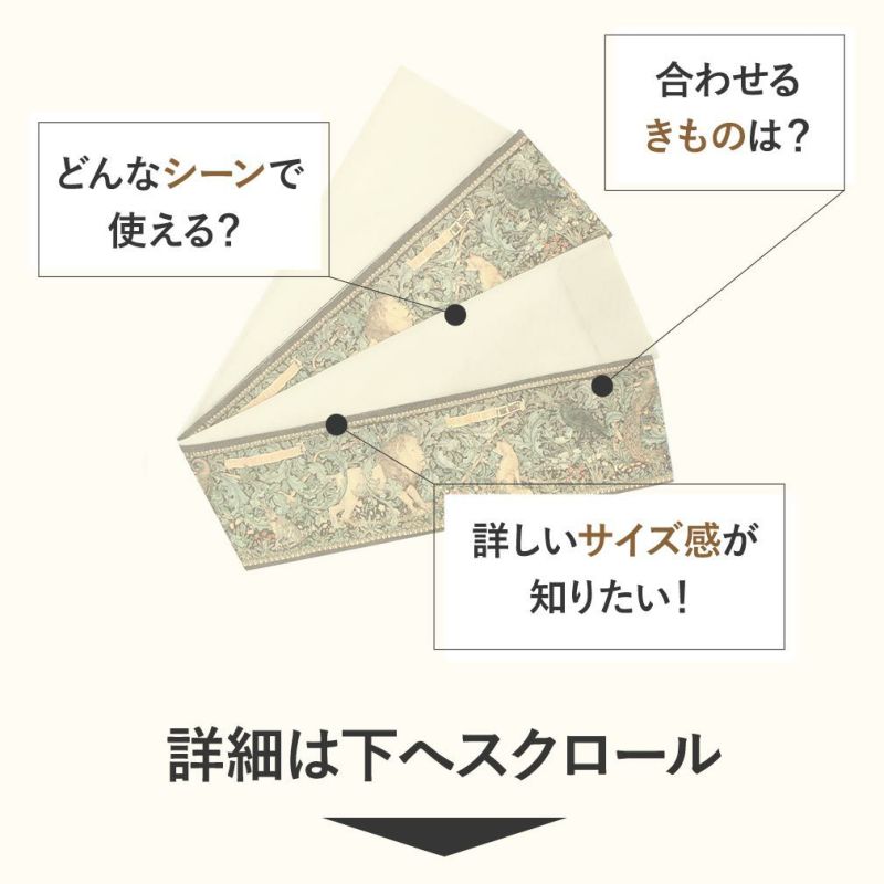他の画像を見る 【最短日お届け】≪うれしづくし≫小紋・紬・色無地などカジュアルな着物に 帯 京袋帯 正絹 お仕立て上がり アイボリー モリスリーフ 日本製 うれしづくし 当店特別価格 ¥ 52,800 税込 カートに入れる お気に入りに登録する