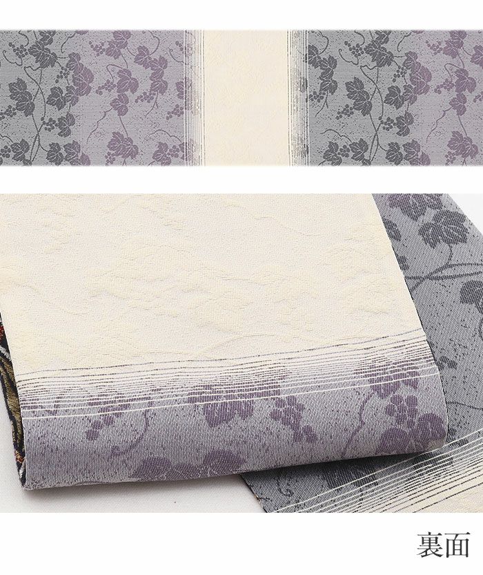 他の画像を見る 【最短日お届け】小紋・紬・色無地などカジュアルな着物に 帯 京袋帯 <グレー・ベージュ/葡萄唐草にボトル> 正絹 仕立て上がり クリーム ワイン 赤紫 日本製 当店特別価格 ¥ 52,800 税込 カートに入れる お気に入りに登録する