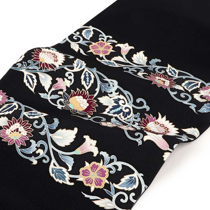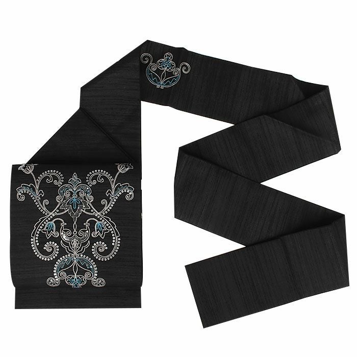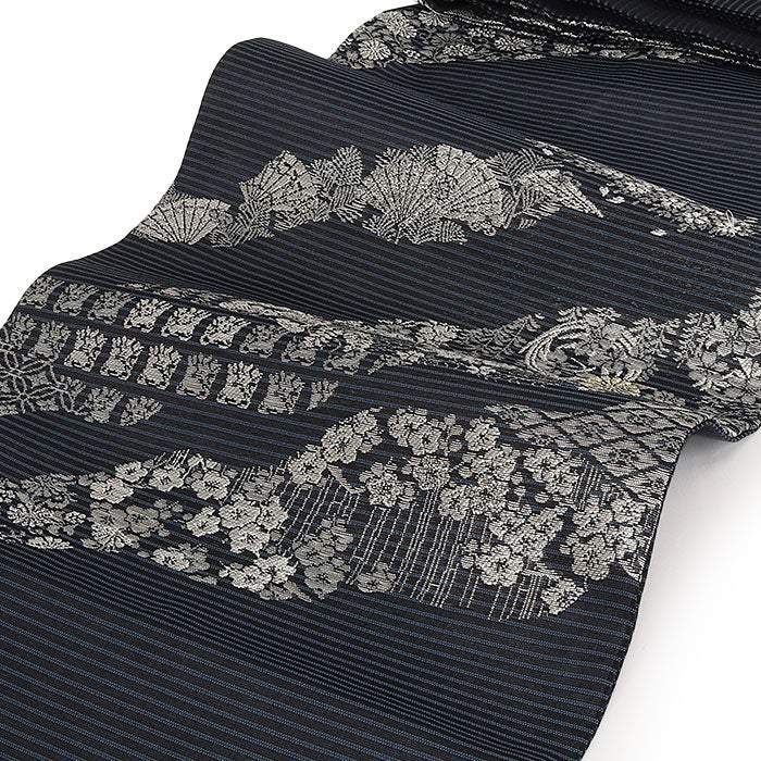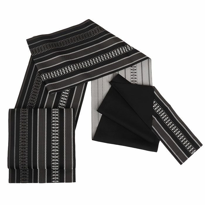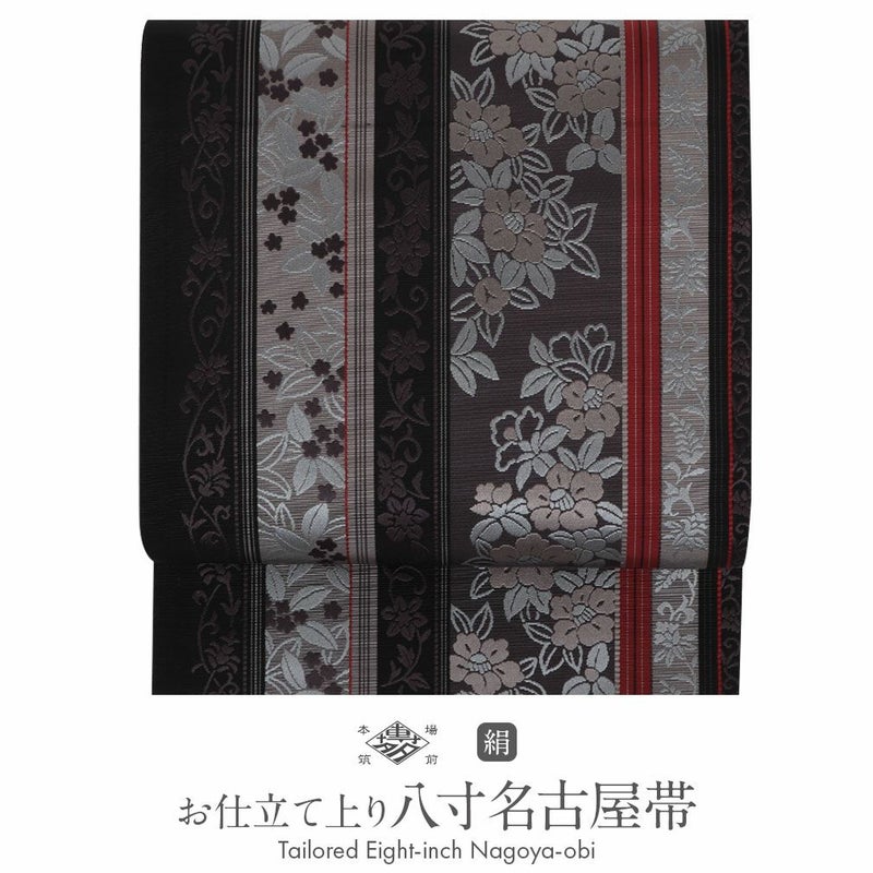 他の画像を見る 小紋 紬 色無地 御召 などのお着物に 名古屋帯 博多帯 博多織 帯 八寸 黒 蔓花 縞 協和織工場 正絹 仕立て上がり 当店特別価格 ¥ 49,500 税込 在庫切れ 再入荷お知らせ お気に入りに登録する