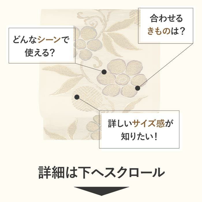他の画像を見る <すぐ使えるお仕立上り八寸名古屋帯>小紋・紬・色無地などのお着物に。 名古屋帯 帯 八寸 ベージュ 正絹 仕立て上がり 当店特別価格 ¥ 8,580 税込 在庫切れ 詳細を見る お気に入りに登録する