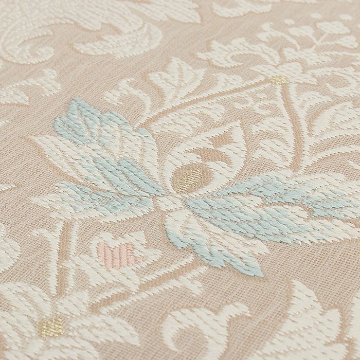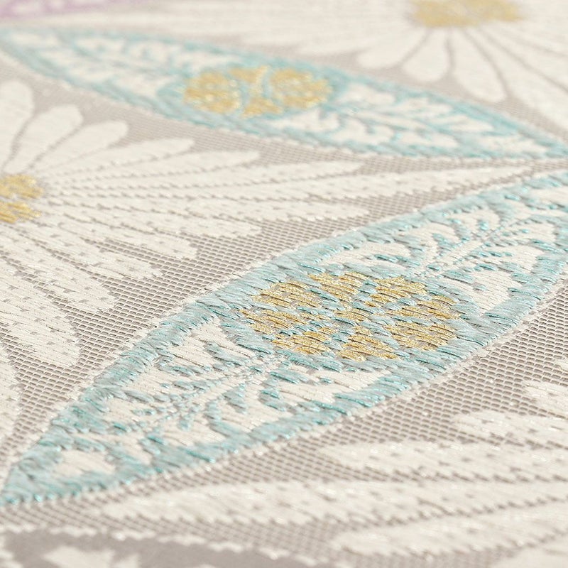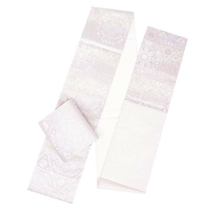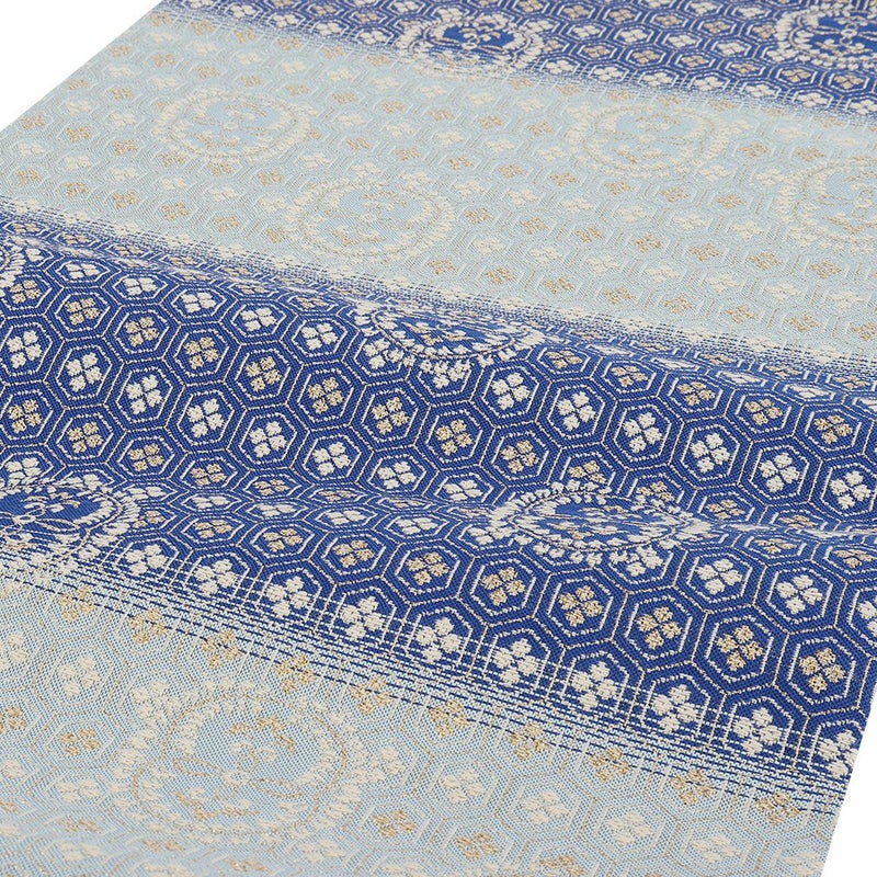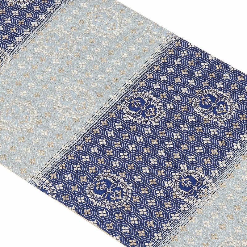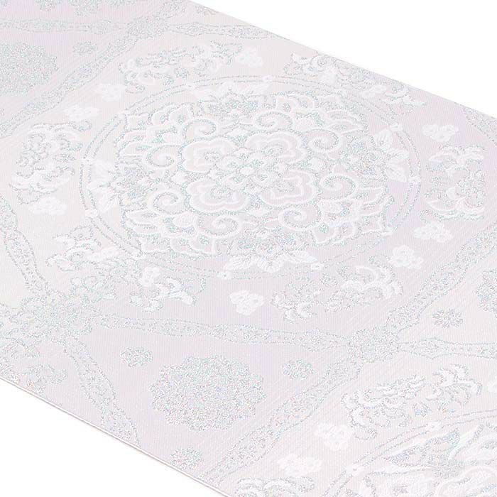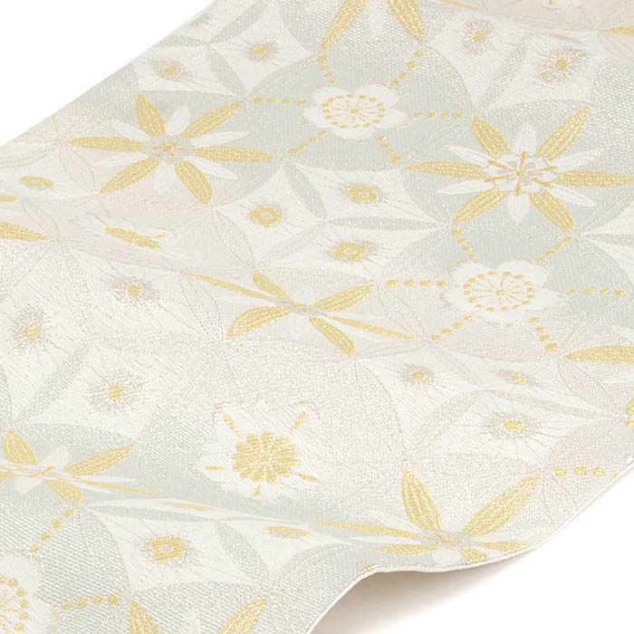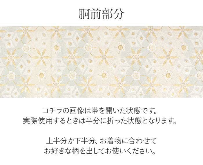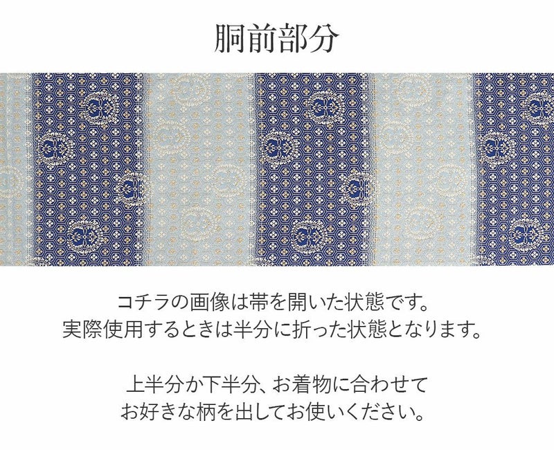 他の画像を見る 年中通して普段着や茶道 華道などのお稽古のお着物に 名古屋帯 博多帯 博多織 帯 八寸 白 水色 洋唐花 ダマスク 協和織工場 正絹 仕立て上がり 当店特別価格 ¥ 44,000 税込 在庫切れ 再入荷お知らせ お気に入りに登録する
