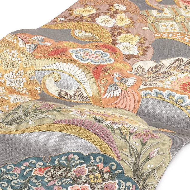 他の画像を見る 《お仕立て上り》【最短日お届け】黒留袖や色留袖、訪問着などのフォーマルなお着物に 袋帯 帯 留袖 訪問着 <シルバー、薄灰青/銀杏紋に扇花> 西陣織 正絹 <丸勇> 仕立て上がり 当店特別価格 ¥ 39,600 税込 在庫切れ 再入荷お知らせ お気に入りに登録する