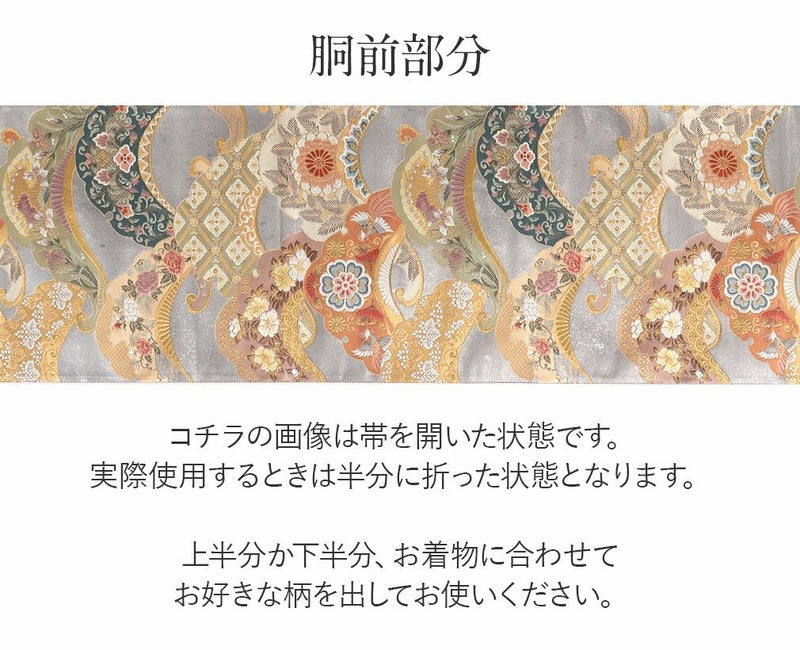 他の画像を見る 《お仕立て上り》【最短日お届け】振袖などのフォーマルなお着物に 袋帯 振袖用 帯 成人式 シルバー 斜め取り 華紋 西陣織 京洛苑たはら織物 仕立て上がり 当店特別価格 ¥ 41,800 税込 在庫切れ 再入荷お知らせ お気に入りに登録する