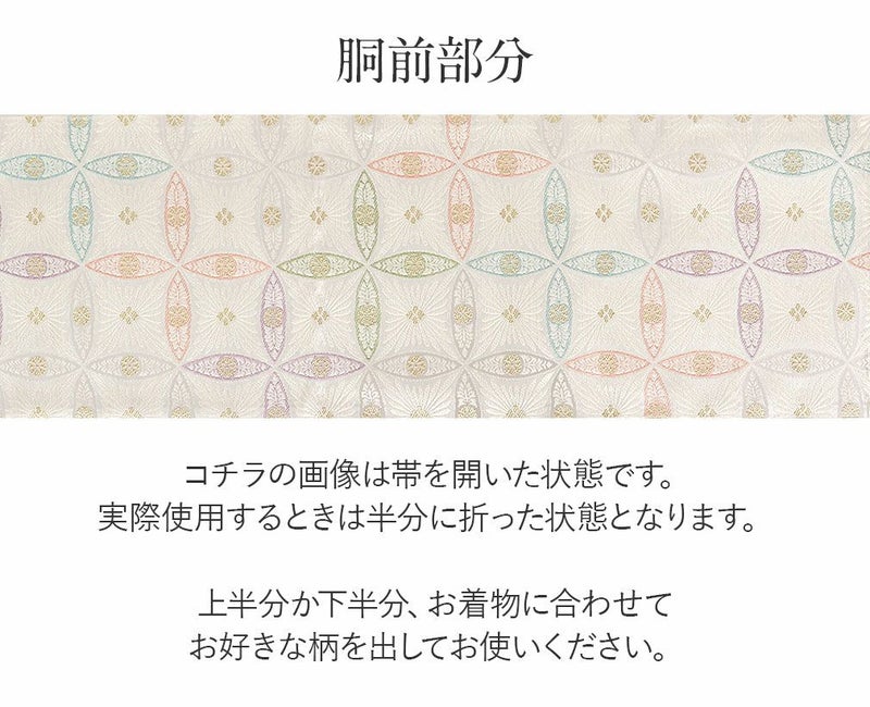 他の画像を見る <すぐ使えるお仕立上り袋帯>黒留袖や色留袖、訪問着などのフォーマルなお着物に。 袋帯 帯 留袖 訪問着 <クリーム/吉祥襷紋> 西陣織 <大光織物> 仕立て上がり 当店特別価格 ¥ 41,800 税込 在庫切れ 詳細を見る お気に入りに登録する