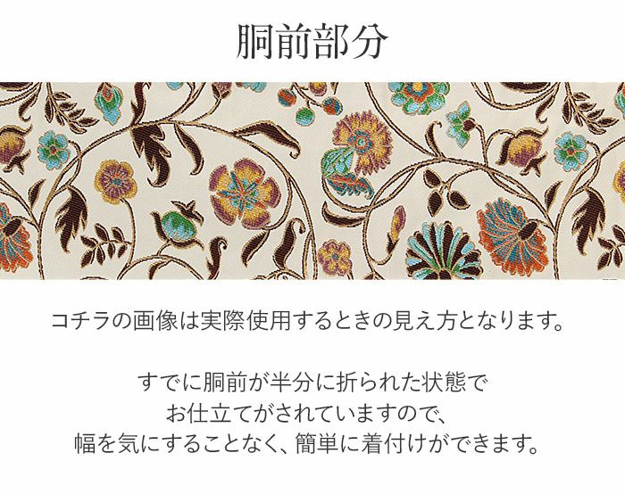 他の画像を見る 【最短日お届け】小紋・紬・街着などのカジュアルなお着物に 半幅帯 帯 リバーシブル ポリエステル100% < アイボリー / 唐花 >日本製 当店特別価格 ¥ 9,900 税込 在庫切れ 再入荷お知らせ お気に入りに登録する
