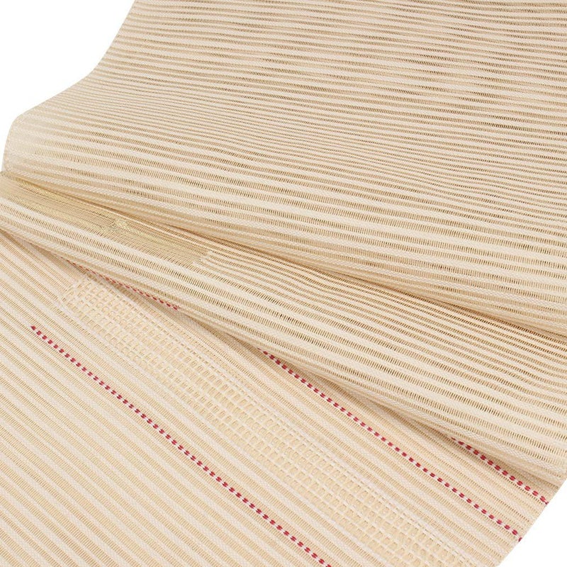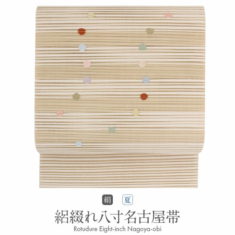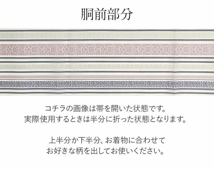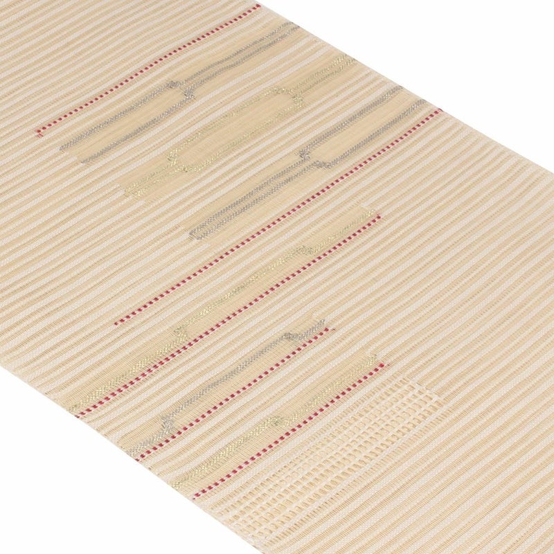 他の画像を見る 年中通して普段着や茶道 華道などのお稽古のお着物に 名古屋帯 博多帯 博多織 帯 八寸 ベージュ 縞 唐花 間道 協和織工場 正絹 仕立て上がり 当店特別価格 ¥ 44,000 税込 在庫切れ 再入荷お知らせ お気に入りに登録する