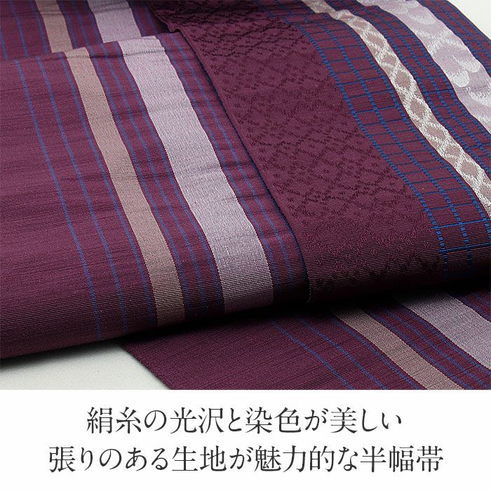 他の画像を見る 小紋 紬 街着 などの カジュアル な お着物に 博多織 半幅帯 絹 帯 紫 格子 縞 小野織物 日本製 当店特別価格 ¥ 11,000 税込 在庫切れ 詳細を見る お気に入りに登録する