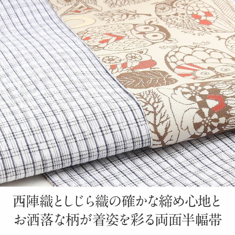 他の画像を見る 【最短日お届け】《西陣×阿波しじら》小紋などのカジュアルなお着物や夏の着物・単衣に 半幅帯 正絹 リバーシブル 西陣織 阿波しじら織 帯 フクロウ 田中伝機 日本製 当店特別価格 ¥ 22,000 税込 在庫切れ 詳細を見る お気に入りに登録する