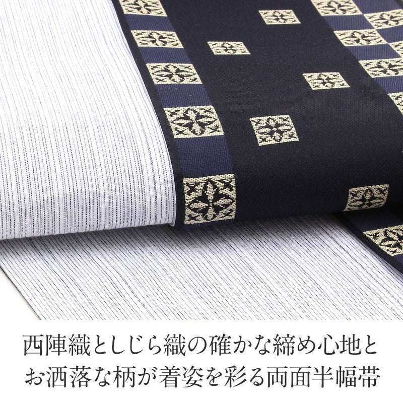 他の画像を見る 小紋 紬 街着 などのカジュアルなお着物に 博多織 半幅帯 普段用 博多帯 小袋帯 正絹 ブラック ブルー グレー イエロー ブラウン 縞 更紗市松 花 日本製 当店特別価格 ¥ 27,500 税込 在庫切れ カートに入れる お気に入りに登録する