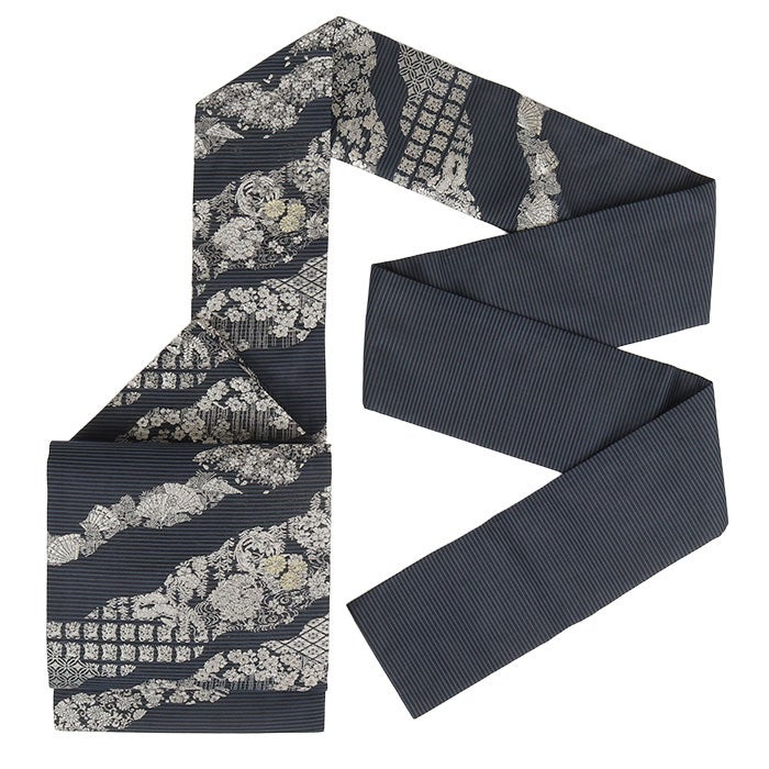 他の画像を見る 小紋 紬 街着 などのカジュアルなお着物に 博多織 半幅帯 普段用 博多帯 小袋帯 正絹 ブラック ブルー グレー イエロー ブラウン 縞 更紗市松 花 日本製 当店特別価格 ¥ 27,500 税込 在庫切れ お気に入りに登録する