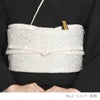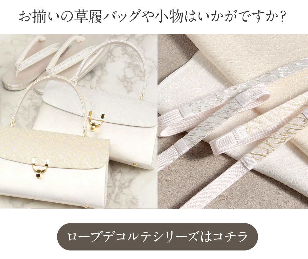 皇室御用達の正礼装ドレスである「Robe De’collete’e ローブデコルテ」 衿を大きく開け、首元や胸元を露わにしたイブニングドレスは、女性が憧れる最高礼装スタイルです。 その生地に施されるシンプルでエレガントな柄を、着物の第一礼装に相応しい洗練された帯揚げに使用しました。 金銀糸を使用して柄を織りだした生地は、角度によって色合いを変え、オーロラのような輝きを放つ上品かつ華やかな柄つき。 フォーマルスタイルの装いに一層の気品を演出します。 結婚式などの留袖や、パーティーでの訪問着など、礼装スタイルに相応しい逸品です。 礼装にふさわしい豪華な雰囲気が感じられる帯揚げを2色ご用意いたしました。 フォーマルなお着物に合わせて、上品で華やかな装いにお役立てください。