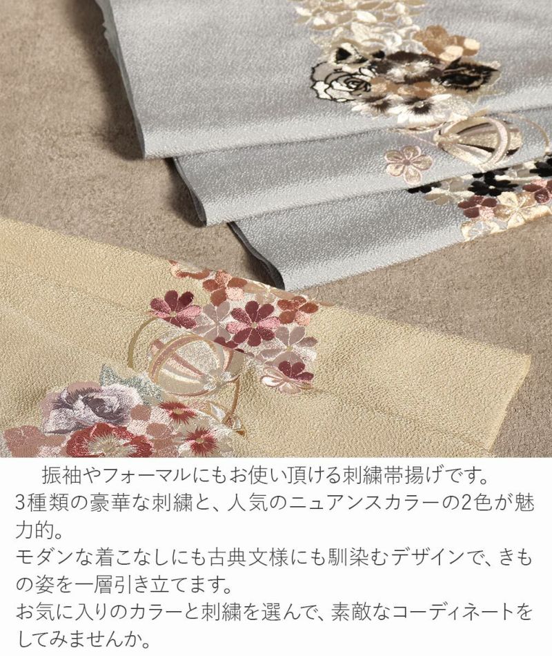 他の画像を見る 振袖の差し色に 美しい 刺繍 ニュアンスカラー お手入れ簡単 帯揚げ 振袖 成人式 ちりめん 刺繍 ポリエステル 全2色 ベージュ グレー 肌色 灰 ニュアンス くすみカラー 日本製 当店特別価格 ¥ 7,920 税込 (0) 詳細を見る お気に入りに登録する