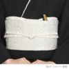 皇室御用達の正礼装ドレスである「Robe De’collete’e ローブデコルテ」 衿を大きく開け、首元や胸元を露わにしたイブニングドレスは、女性が憧れる最高礼装スタイルです。 その生地に施されるシンプルでエレガントな柄を、着物の第一礼装に相応しい洗練された帯揚げに使用しました。 金銀糸を使用して柄を織りだした生地は、角度によって色合いを変え、オーロラのような輝きを放つ上品かつ華やかな柄つき。 フォーマルスタイルの装いに一層の気品を演出します。 結婚式などの留袖や、パーティーでの訪問着など、礼装スタイルに相応しい逸品です。 礼装にふさわしい豪華な雰囲気が感じられる帯揚げを2色ご用意いたしました。 フォーマルなお着物に合わせて、上品で華やかな装いにお役立てください。