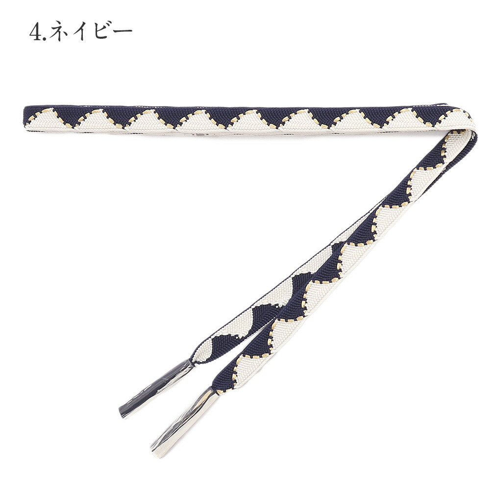 落ち着きのある大人っぽいカラーがお洒落な帯締め。 三角柄にアクセントとなる金糸を組み込んだ、高級感のある大人可愛いデザイン。 カラフルな帯締めは存在感があり、着物のコーディネートをぐっとお洒落な装いに。 丁寧に組み上げられた繊細な編み目と美しい正絹の光沢が楽しめます。 また、見た目だけでなく実用面でも優れており、締めた時のしっかりとした締まり具合で緩みにくく締めやすく、正絹ならではのぎゅっと響く絹鳴りが心地よい逸品です。 カラーは7色展開。どれも少し深みのある発色で、シックなお着物はもちろん、華やかなお着物にも合わせやすい色味を揃えました。 ビビッドカラーよりも肌なじみがよい落ち着いた印象のカラー。 比較的まとう人を選ばないのがのメリットで、大人可愛い印象を醸し出してくれるカラーとしても人気が高く、気軽にコーディネートを楽しめます。 振袖はもちろん、普段のコーディネートのアクセントにもぜひオススメです。 お着物の雰囲気やお好みに合わせてお選びくださいませ。