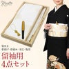 ■格調高い装いを完成させる、上質シルクのフォーマル4点セット■ 黒留袖・色留袖・訪問着など、フォーマルなお着物にぴったりの帯締め・帯揚げ・末広・亀房の4点セットです。 上質なシルク100%素材を使用し、日本製ならではの丁寧な仕上がりで晴れの日の装いを格調高く引き立てます。 帯揚げと帯締めの柄は、上品な菊水文。 収納に便利な桐箱付きで、保管や持ち運びにも安心です。 【特徴】 ・正絹素材で滑らかな質感 ・日本製の丁寧な作り ・収納に便利な桐箱付き お祝いの席にふさわしい 帯締め・帯揚げ・末広・亀房の4点セットを、ぜひお手元に。