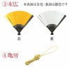 帯揚げ・帯締め:絹100%(金属糸使用) 末広:プラスチック・紙・木 亀房:金属糸使用