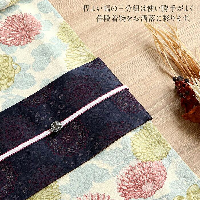 他の画像を見る <日本製> 帯留めも使える三分幅 帯締め 三分紐 三部紐 赤紫 からし 桃 藤色 紫 紺 青 灰 こげ茶 濃灰 黒 全10色 普段用 日本製 正絹 カジュアル 当店特別価格 ¥ 5,500 税込 詳細を見る お気に入りに登録する