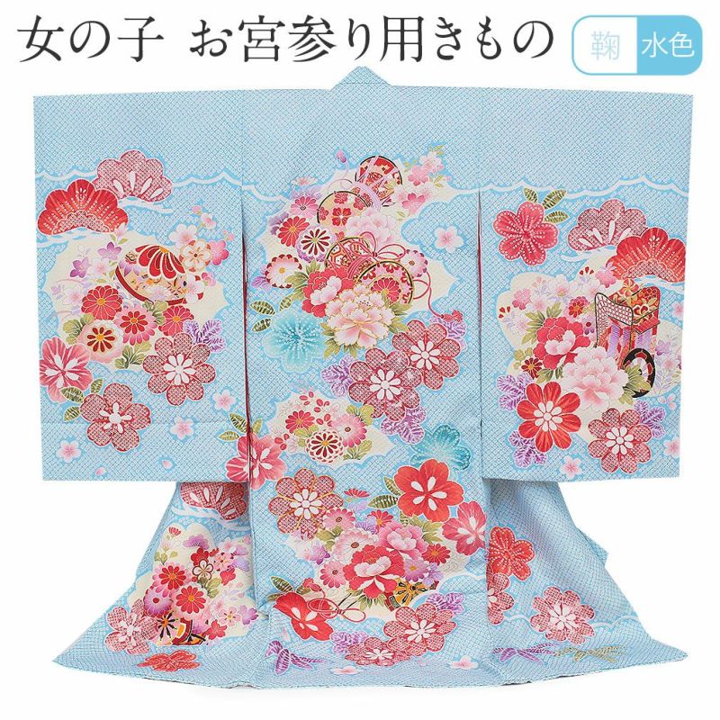 新生児初めての外出のお宮参りにぴったりの、吉祥柄が描かれた産着です。